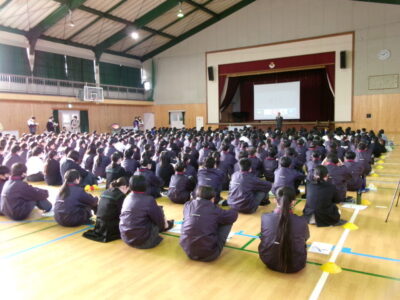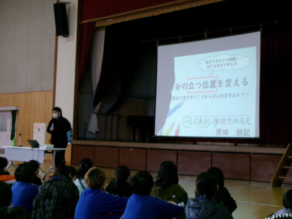 『自分の立つ位置を変える』という演題で、講師先生のご自身の体験から、子どもたちに分かりやすくお話をしていただきました。