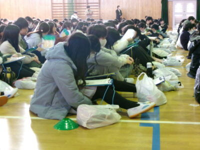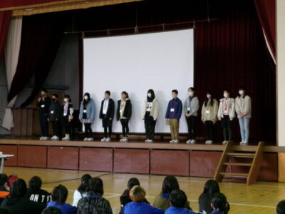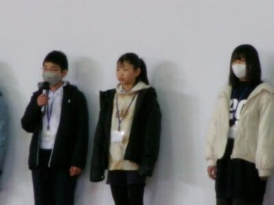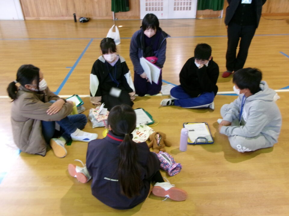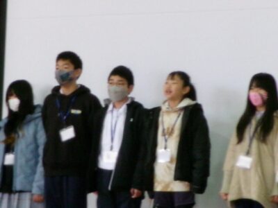 集まったのは、第四小学校、港小学校の6年生と鎌田中学校2年生です。
