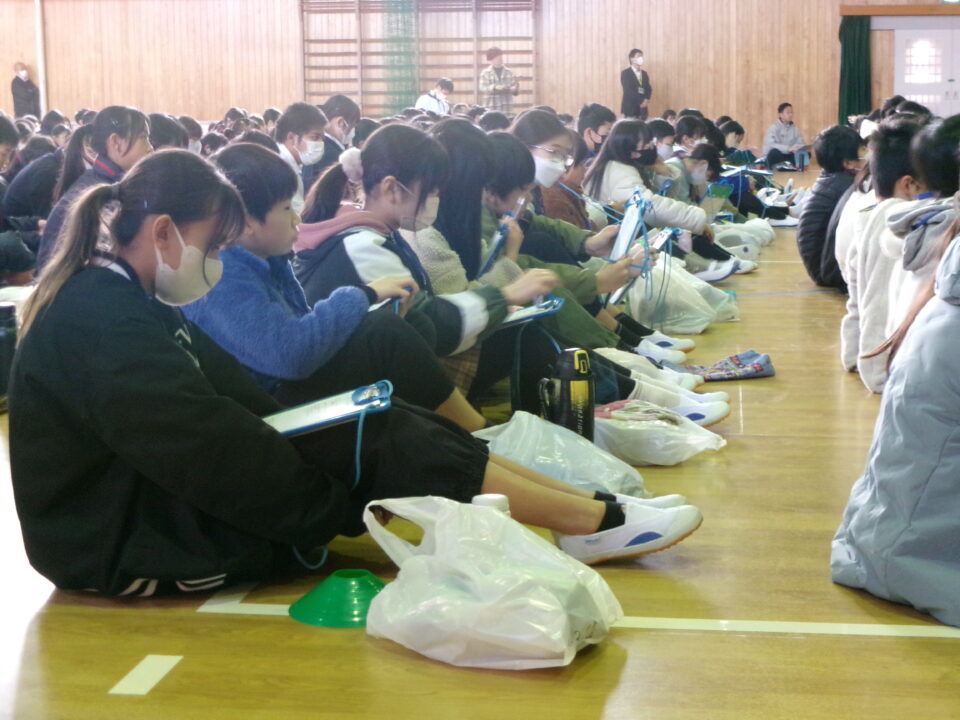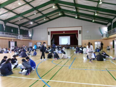 人権について、鎌田中学校区の3校が集まってみんなで話し合う『人権フォーラム』を鎌田中学校体育館に集まり、開催しました。