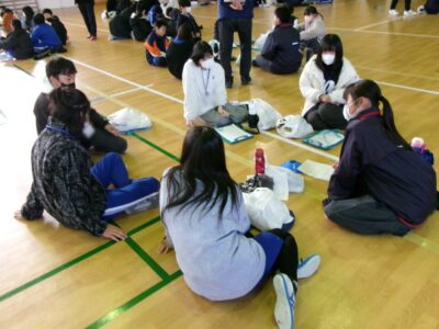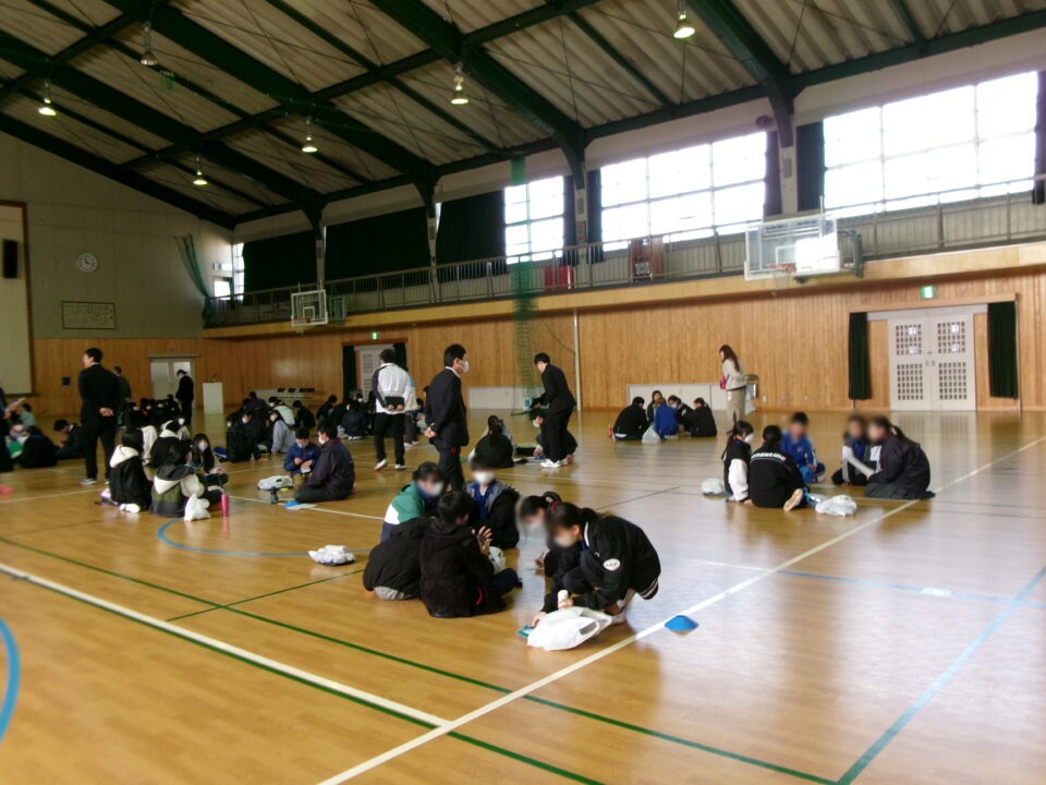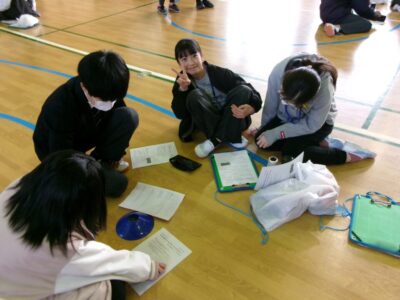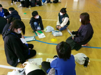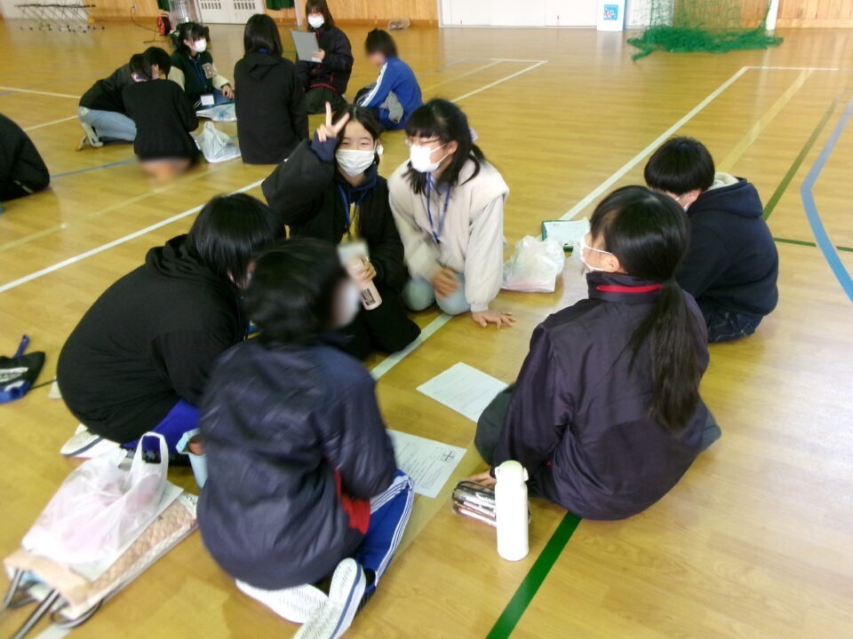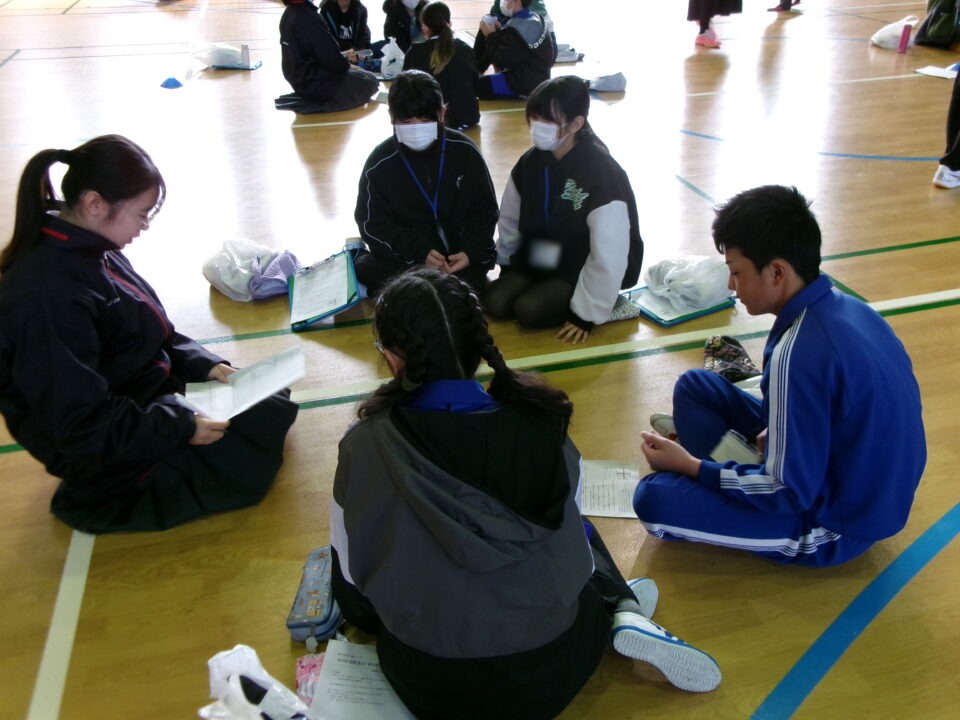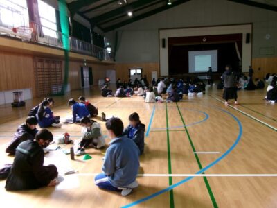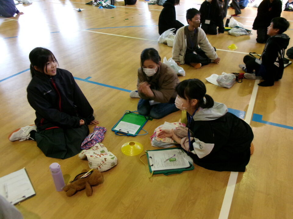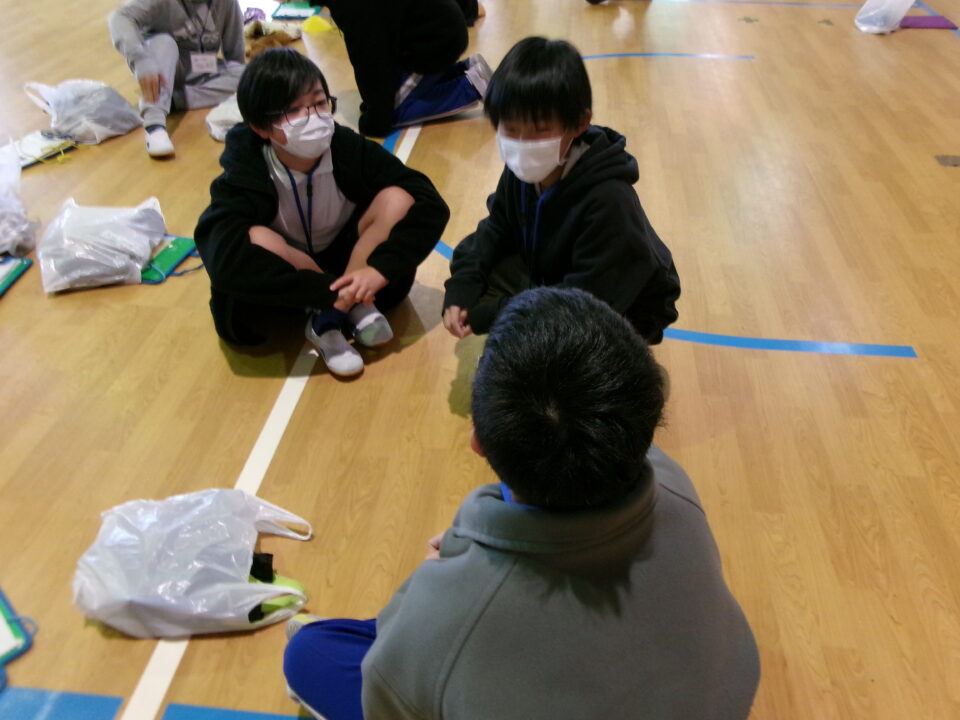 講演会後は、小中交流会を行いました。26のグループを作って、小学生と中学生で交流をしました。