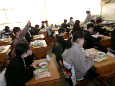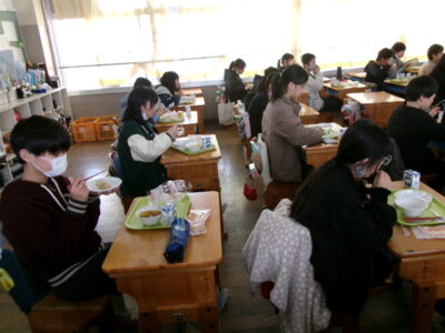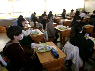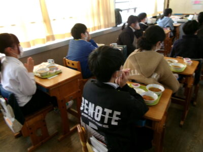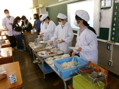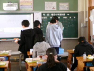 今日は、6年生の卒業のお祝い給食として、事前にセレクトしたメニューのついた給食で、6年生みんなでお祝いしました。