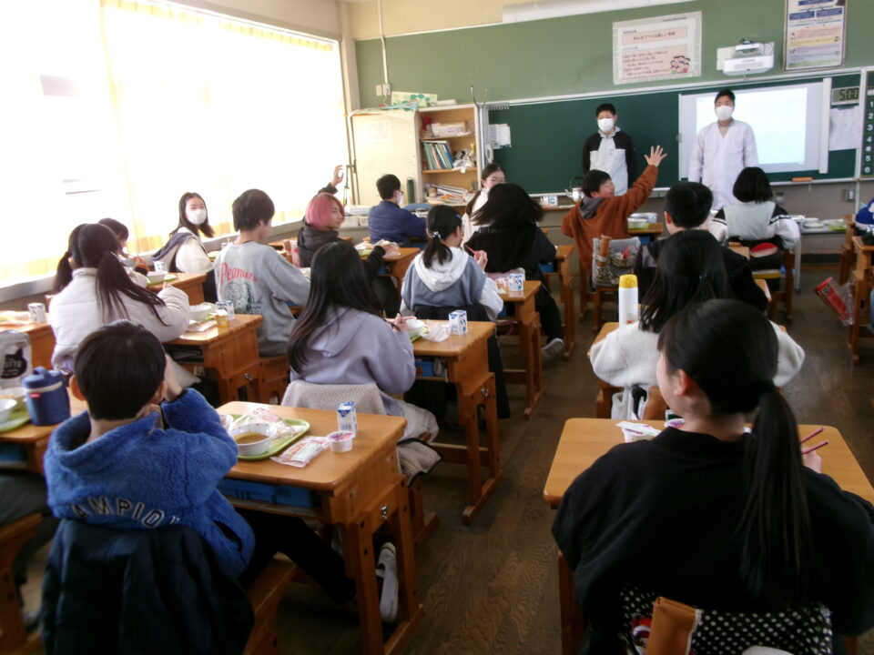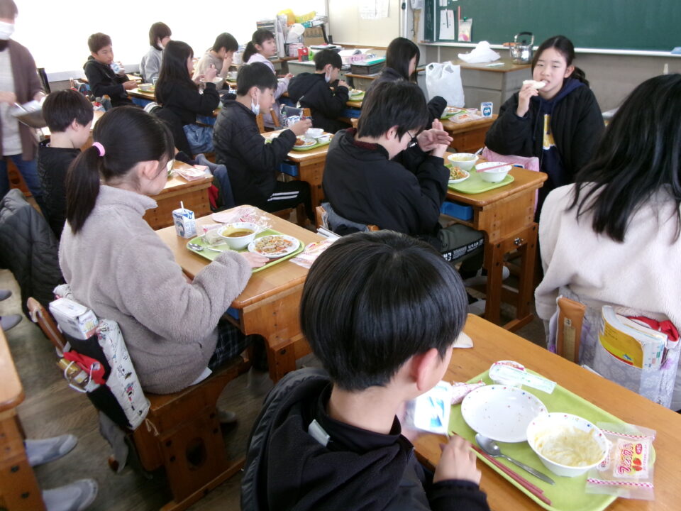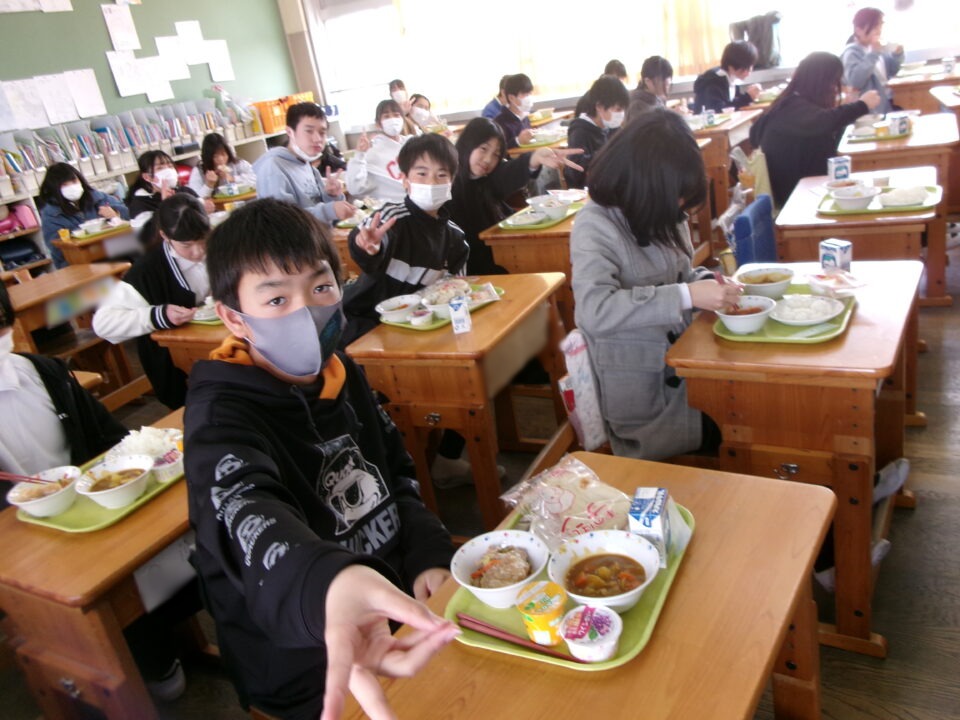 今日は、6年生の卒業のお祝い給食として、事前にセレクトしたメニューのついた給食で、6年生みんなでお祝いしました。