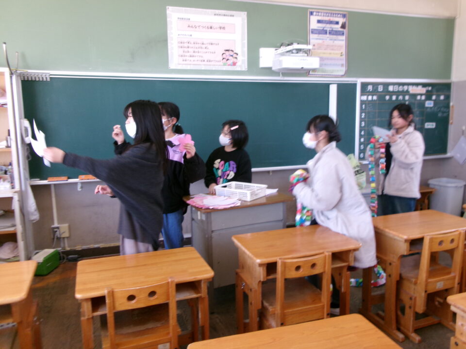 6年生の皆さん、心を込めて体育館や教室を飾り付けたので、18日は体調を整えて卒業式に臨んでくださいね。