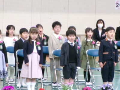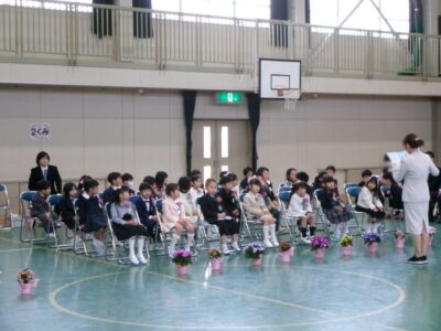 みんな少し緊張している子もいましたが、お家の方、先生たち、6年生のお兄さん、お姉さんが見守る中、チューリップの歌もしっかり歌っていました。