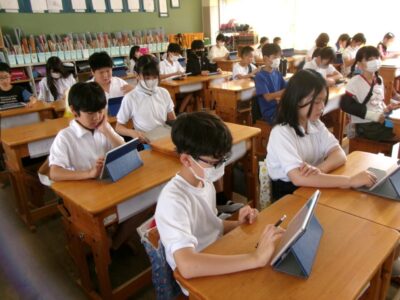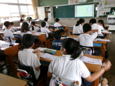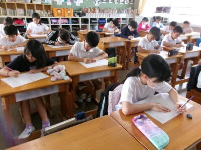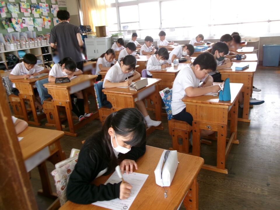 5年生では、漢字の練習をしていました。