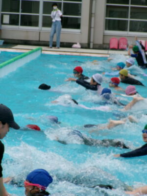 みんな、気持ちよさそうに泳ぐ練習をしていました。