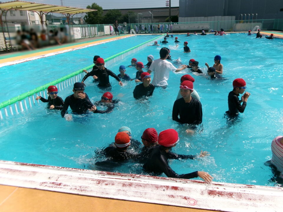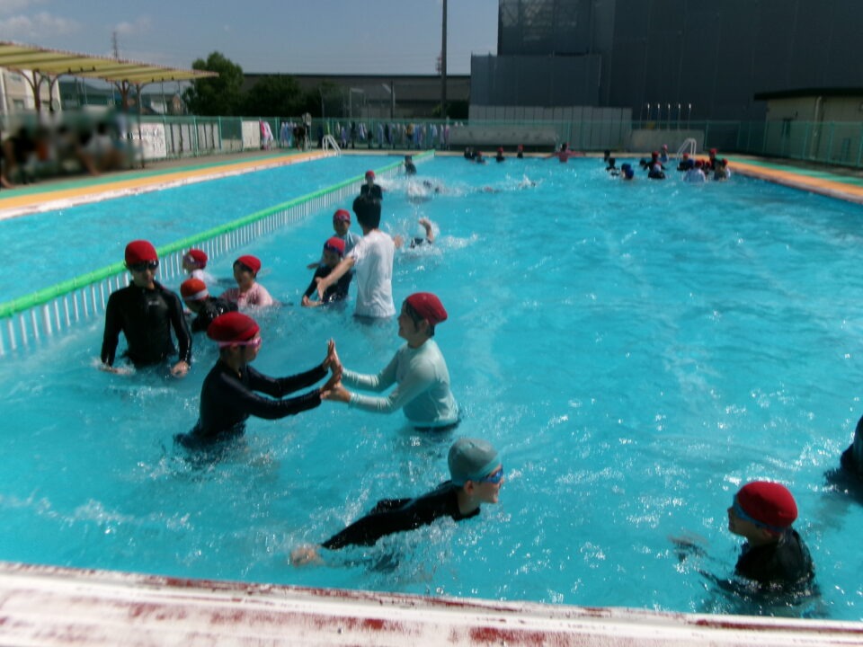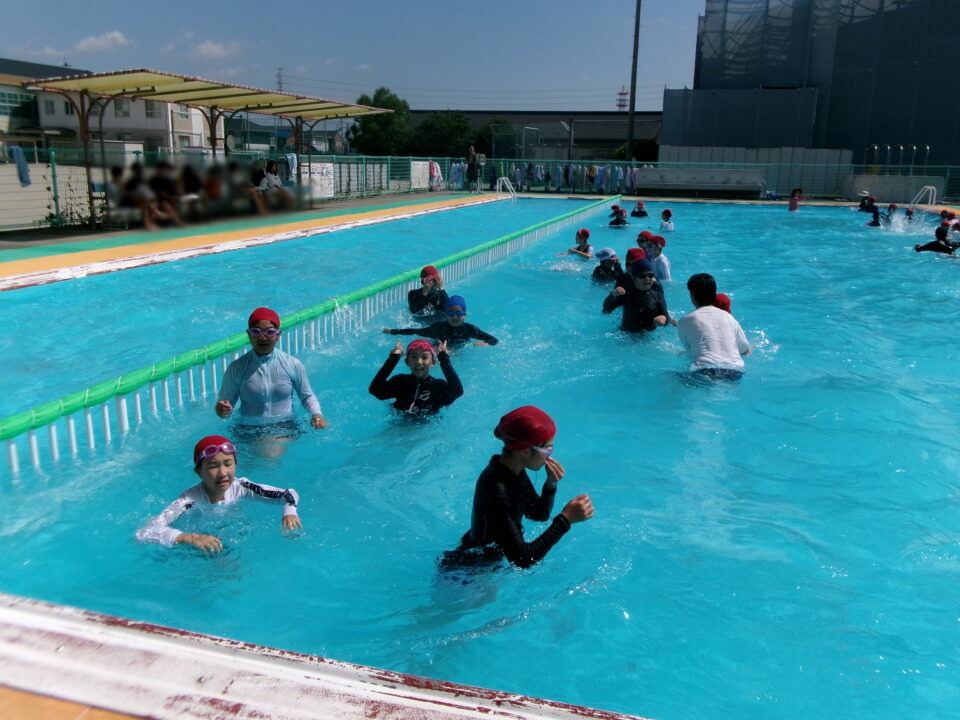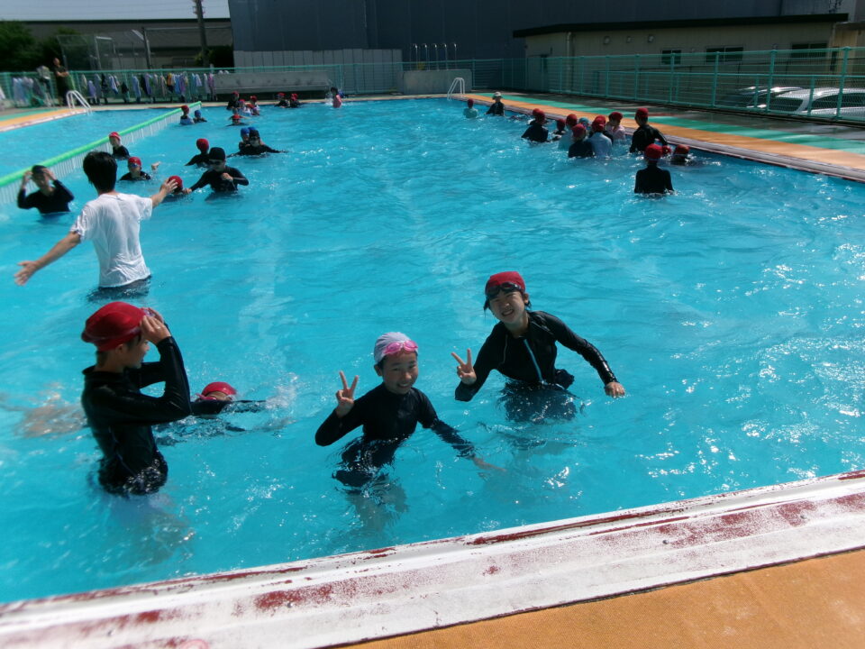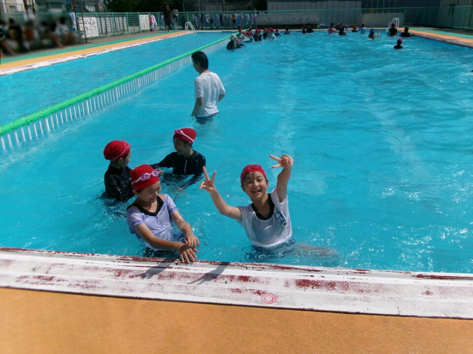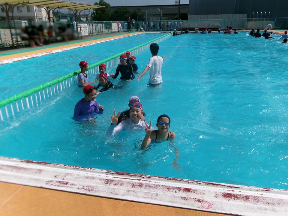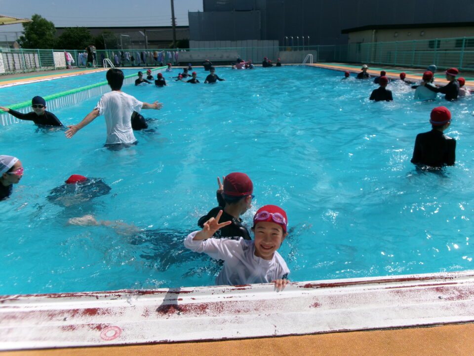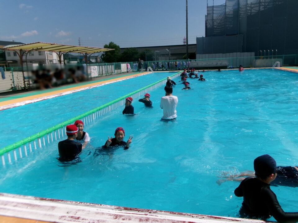 みんな笑顔満開でプールに入っていました。