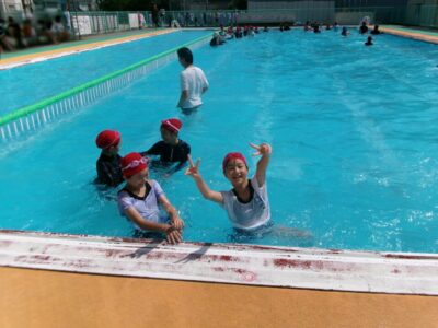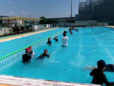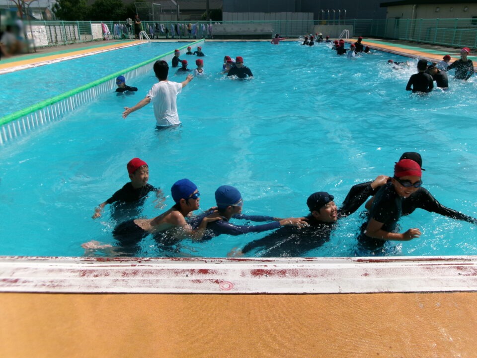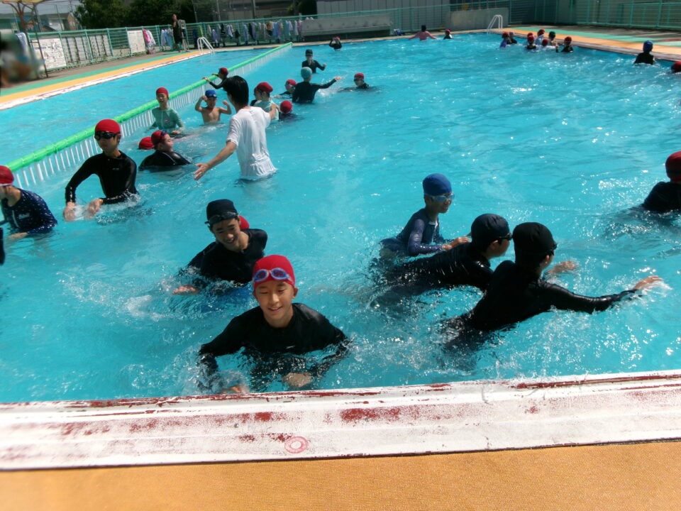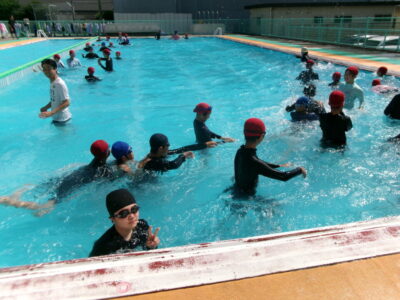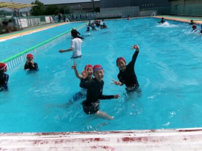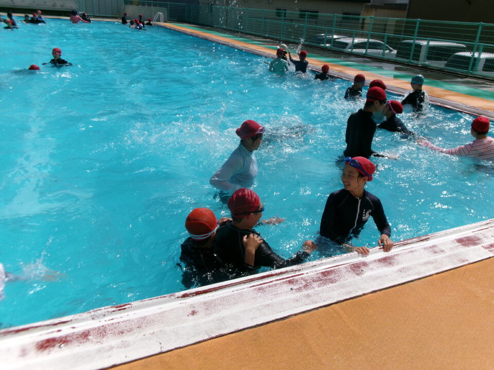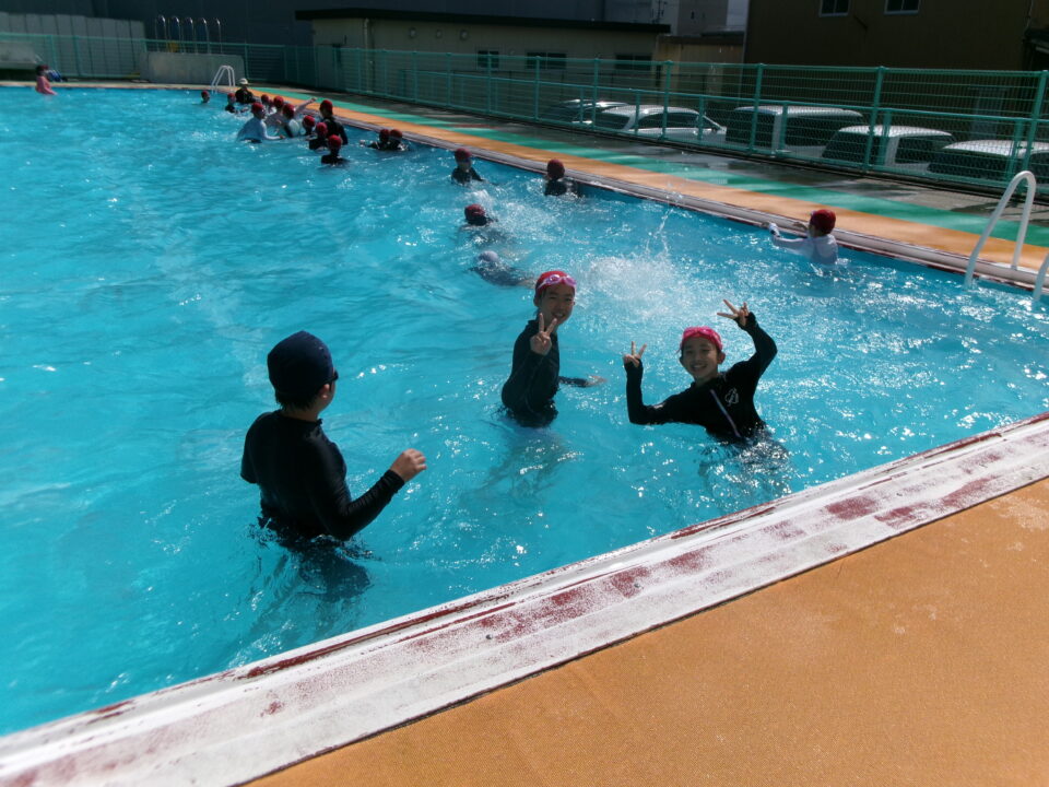 6年生は、泳ぐ練習としては最後のプール水泳です。来週の1回は着衣水泳を実施します。