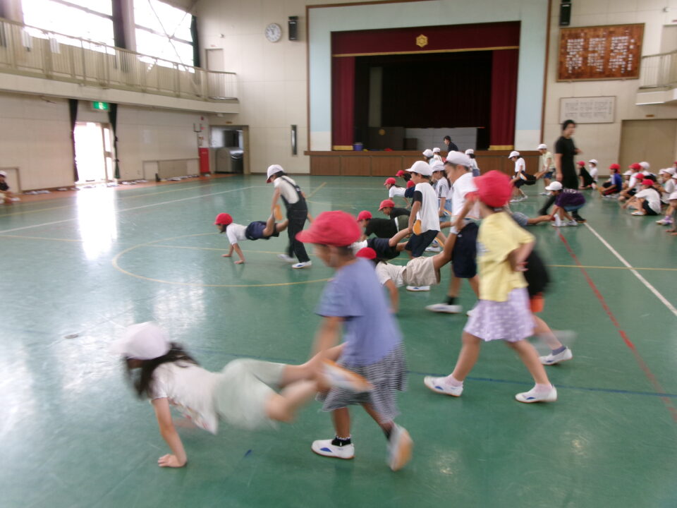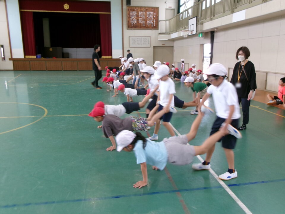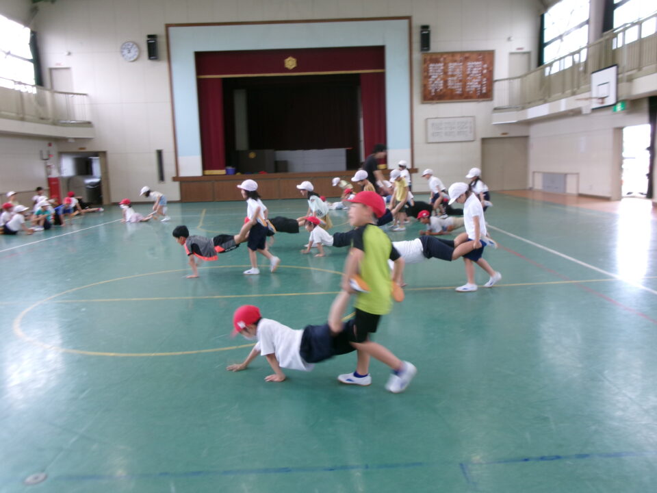 3年生は、合同体育でした。手押し車をがんばっていました。
