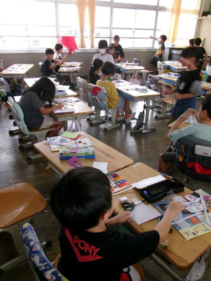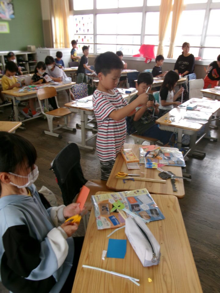 図工では、ストローを使ってパタパタ動くおもちゃを作っています。