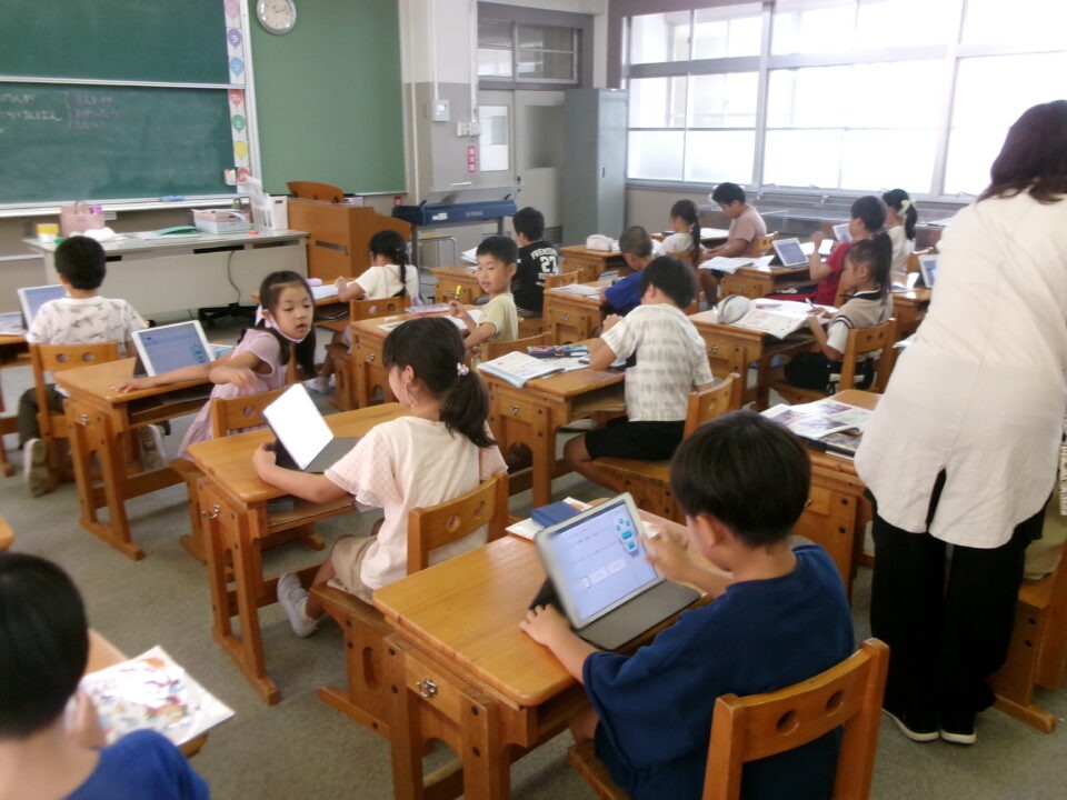 音楽では、プリント学習をして終わった人からeライブラリで学習もしていました。レベルもぐんぐん上がってきていますね。