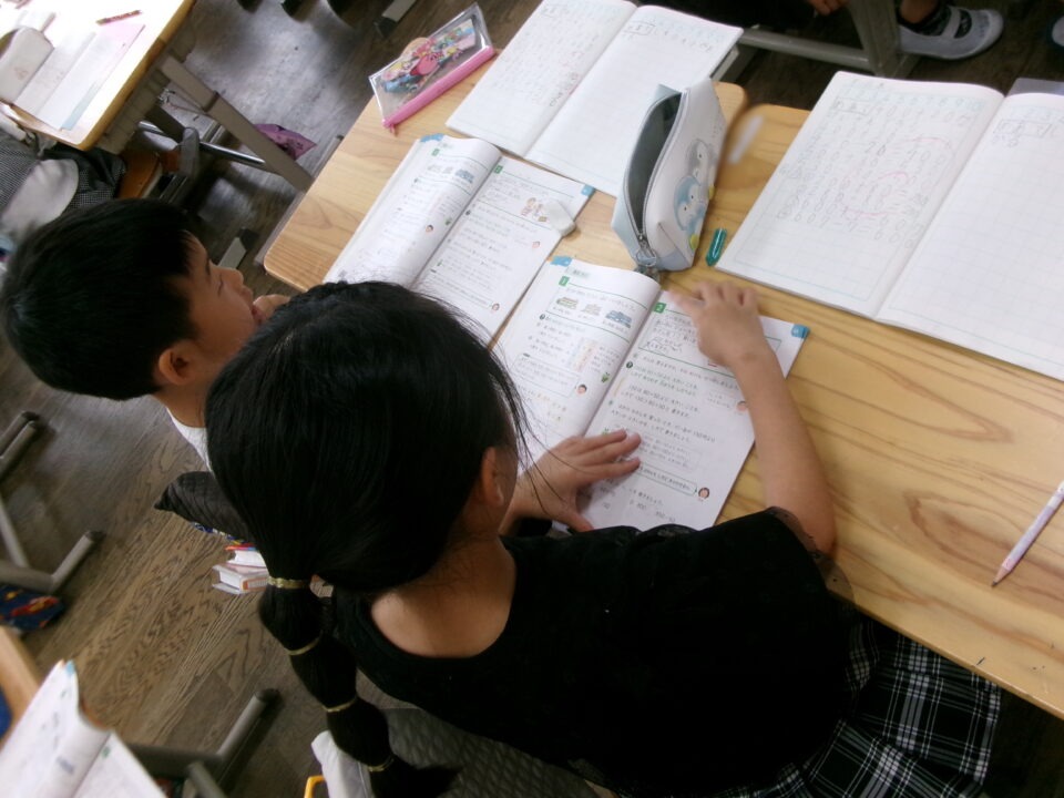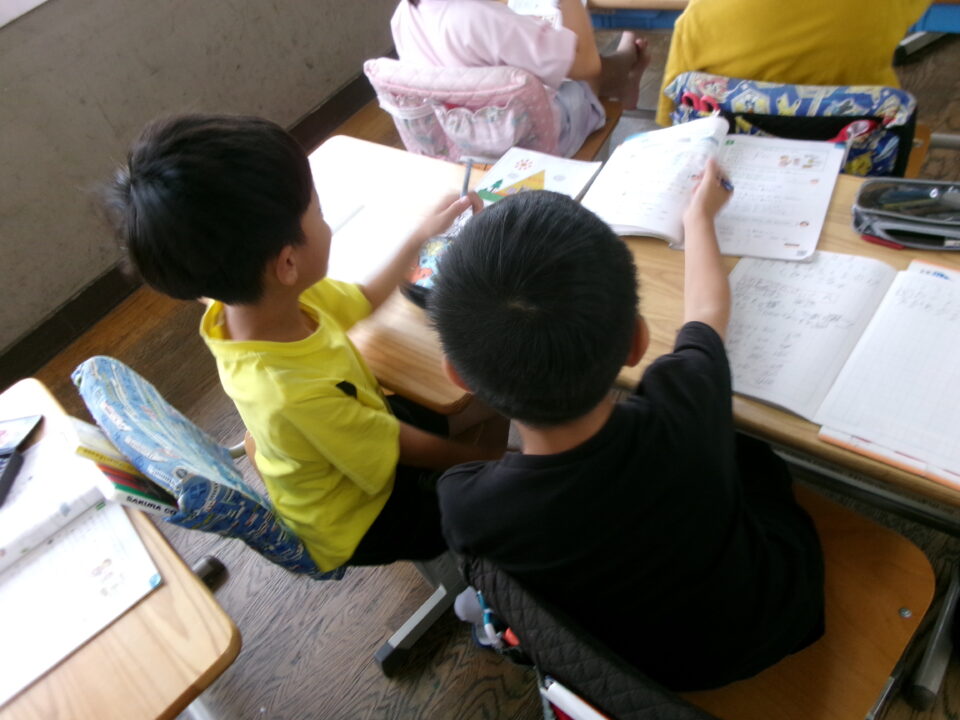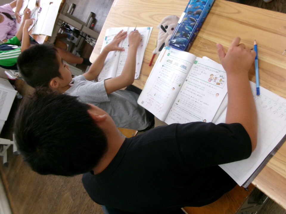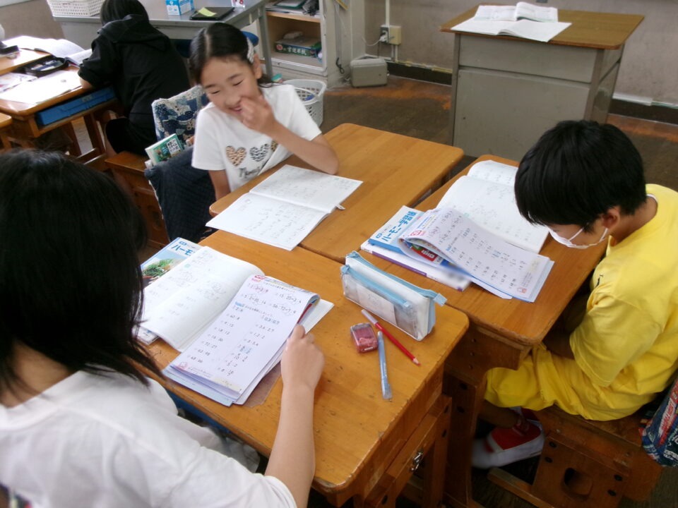 6年生では、今日は計算ドリルの問題を友だちとやり方を教え合いながら解いていました。自分一人だと難しいとやる気がなくなってきますが、友だちに聞きながらやると理解もできて進められますね。「解決した!」とすっきりしたように話す子もいました。良かったです。