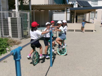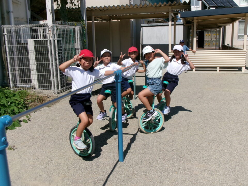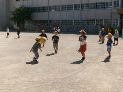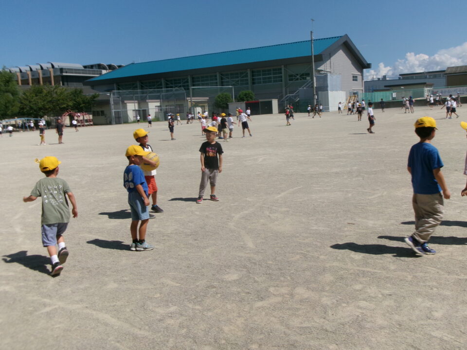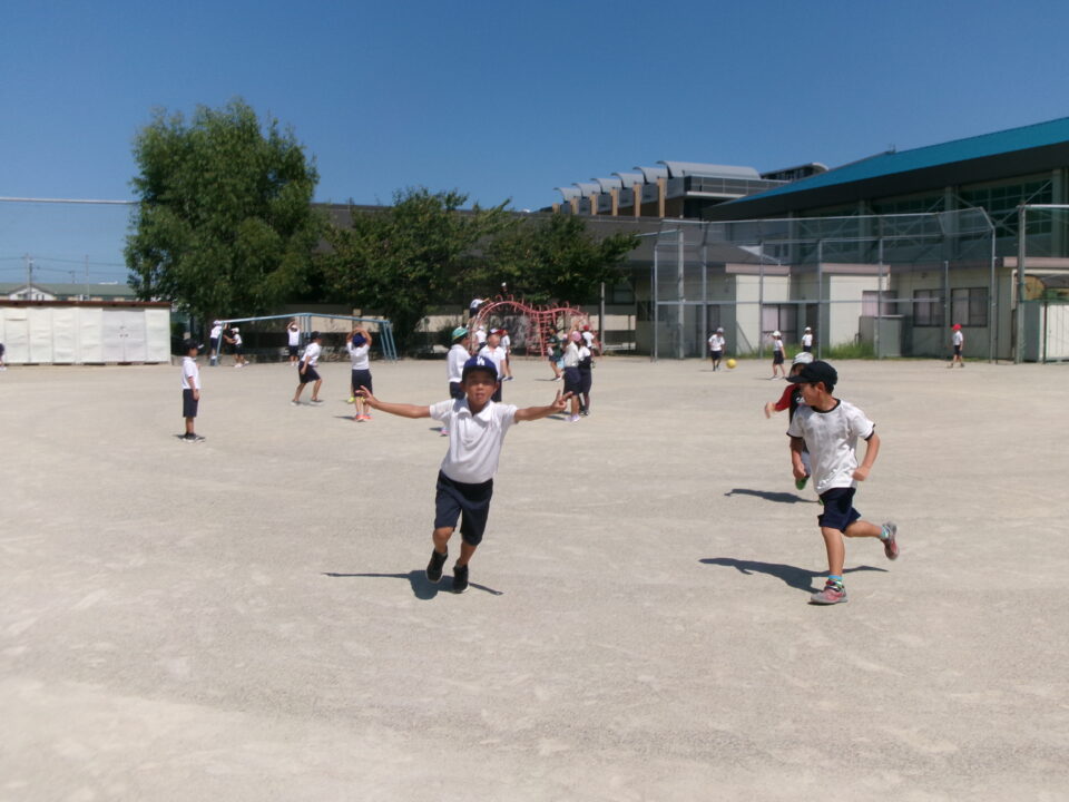 今日も子どもたちは、休憩時間に運動場でドッジボール、おにごっこ、一輪車などで体を動かしていました。