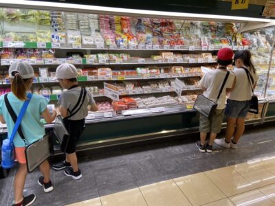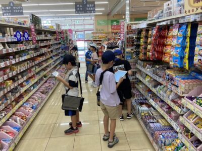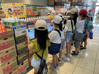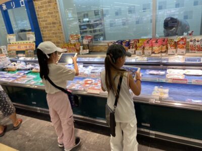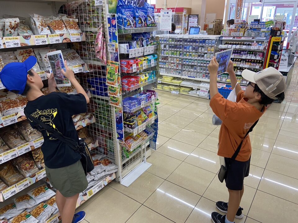 子どもたちは、店内を歩き回り、タブレットで写真を撮りながら、売られているものや、お店の工夫などを調べました。