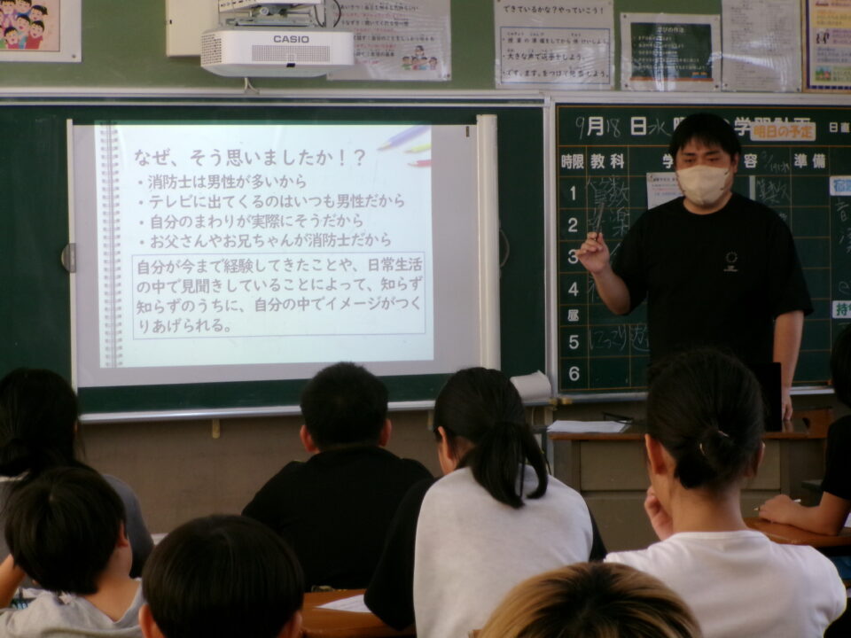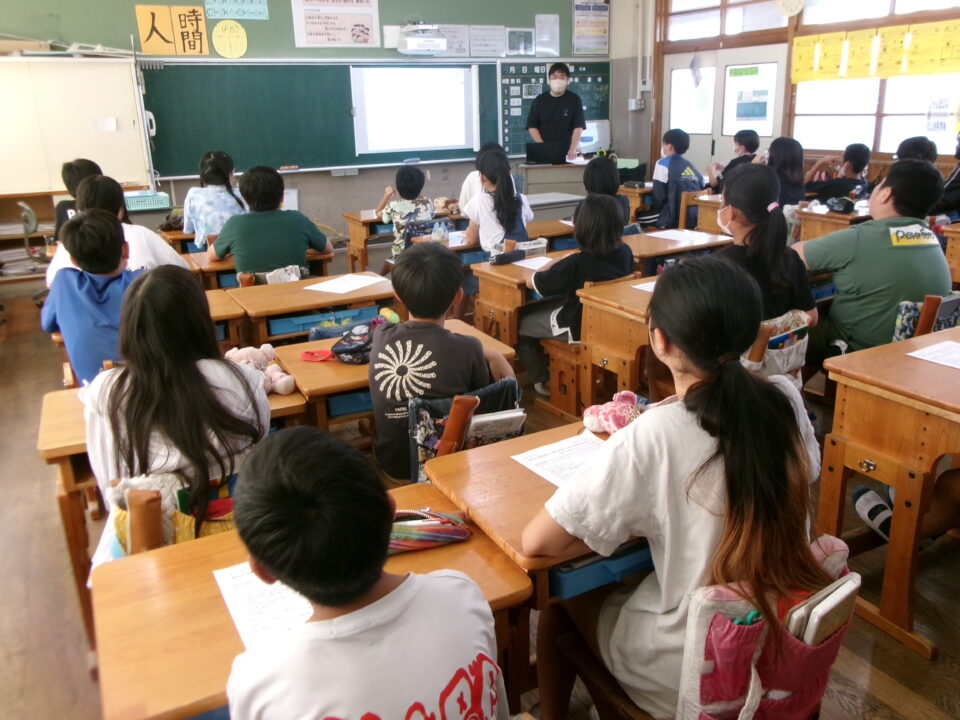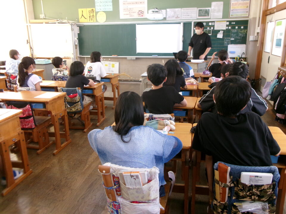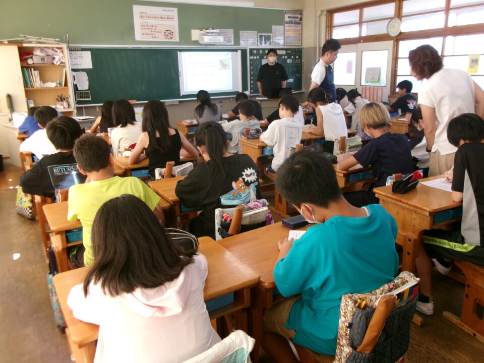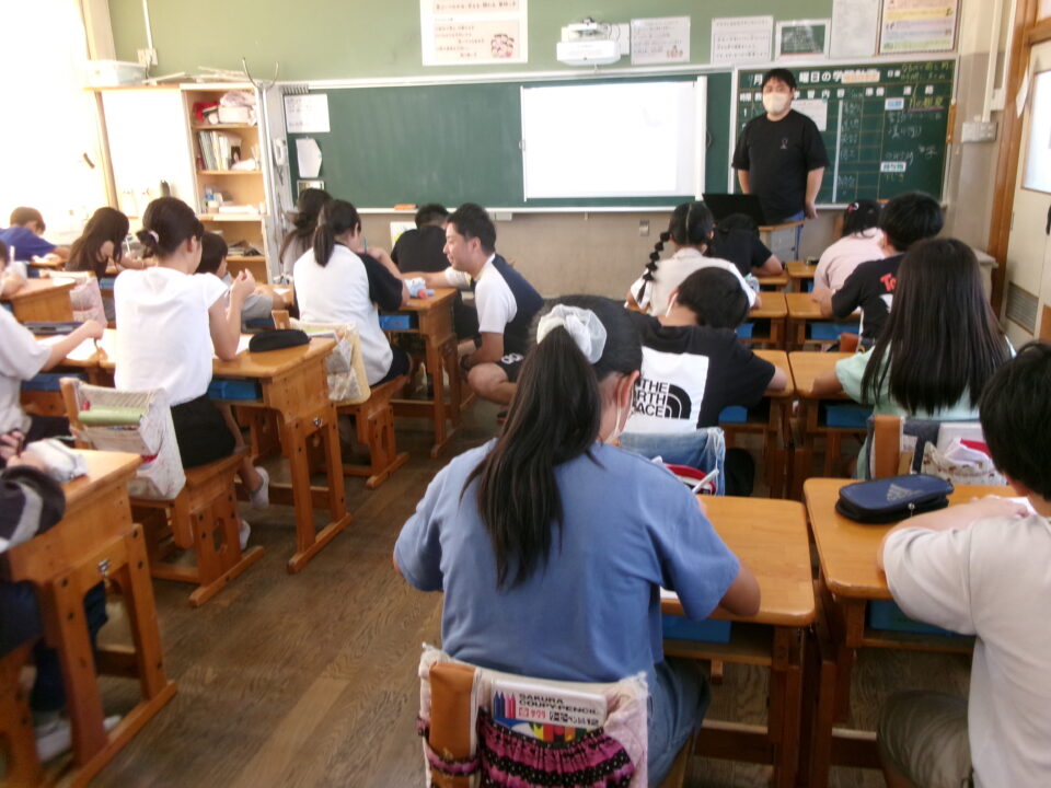 6年生では、反差別・人権研究所みえ(ヒューリアみえ)から講師の方を招いて、『自分の立つ位置を変える~自分と向き合うことからはじめませんか?』という題でお話をしていただきました。