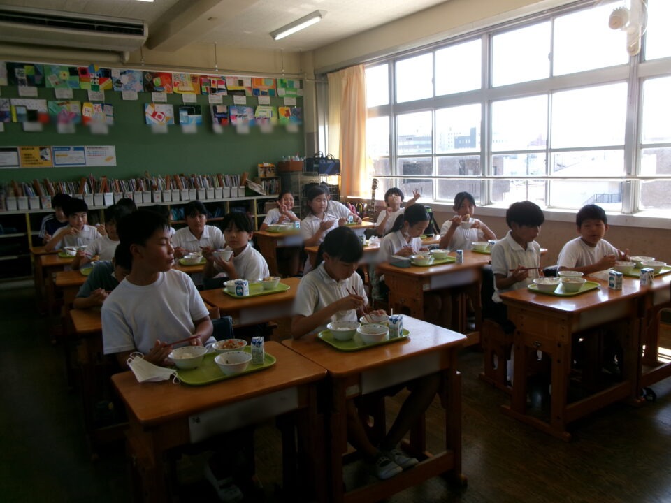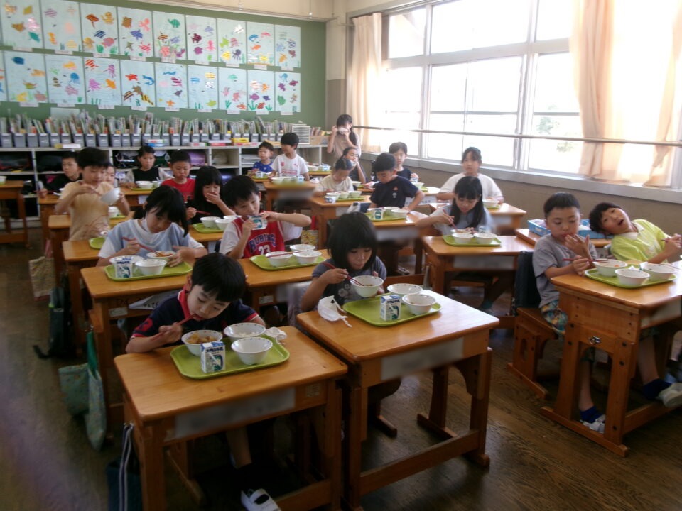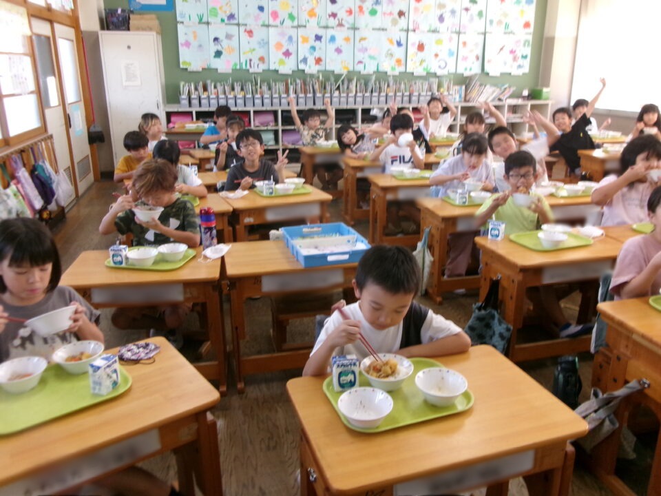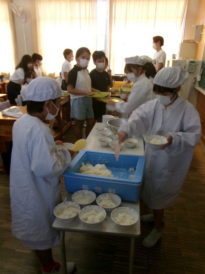 残暑厳ざんしょきびしい毎日まいにちで、食欲しょくよく気味ぎみですが、どもたちは給食きゅうしょくたのしみにしています。