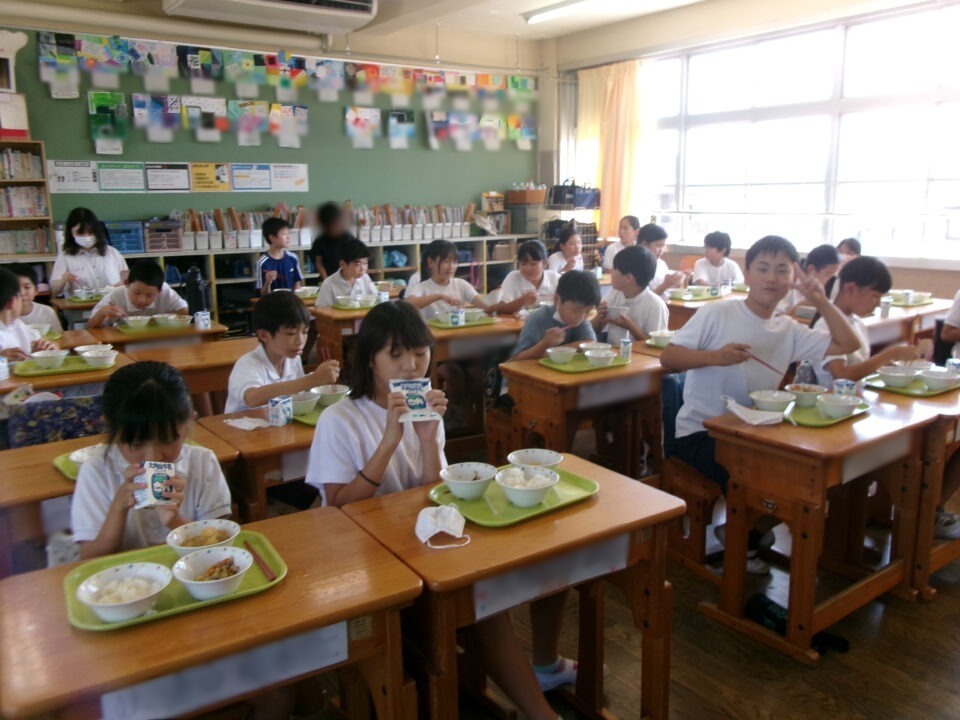 給食を食べて、暑さに負けず、がんばりましょうね!