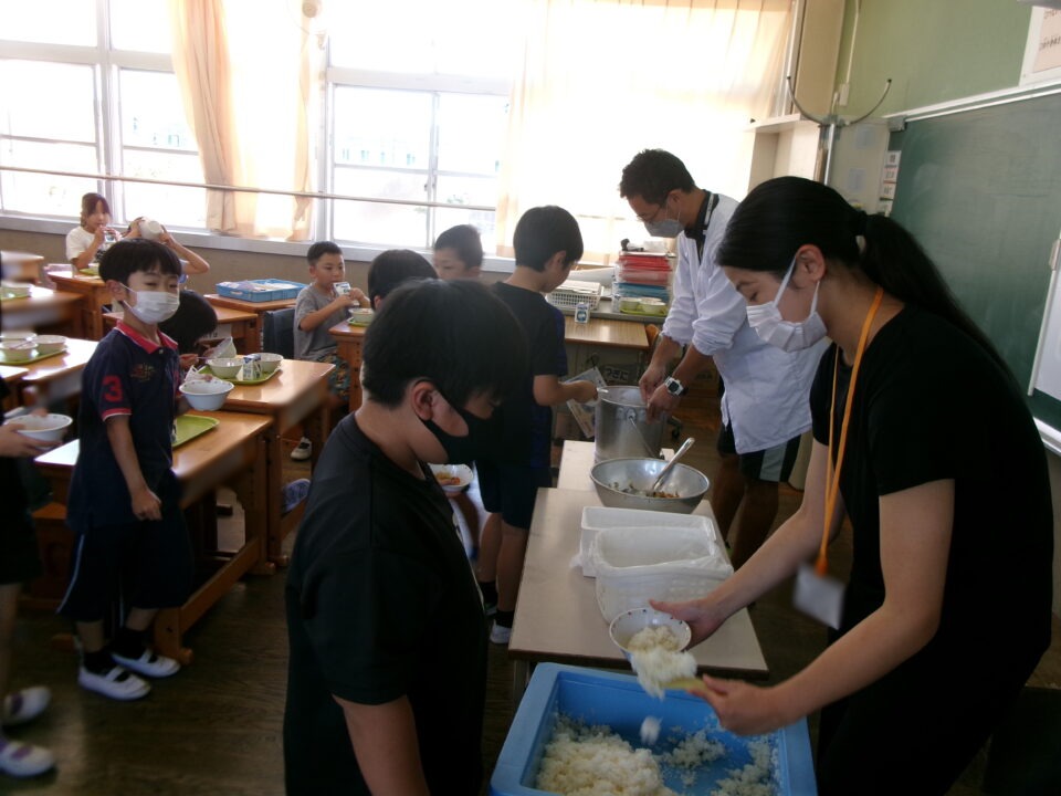 残暑厳しい毎日で、食欲も落ち気味ですが、子どもたちは給食を楽しみにしています。