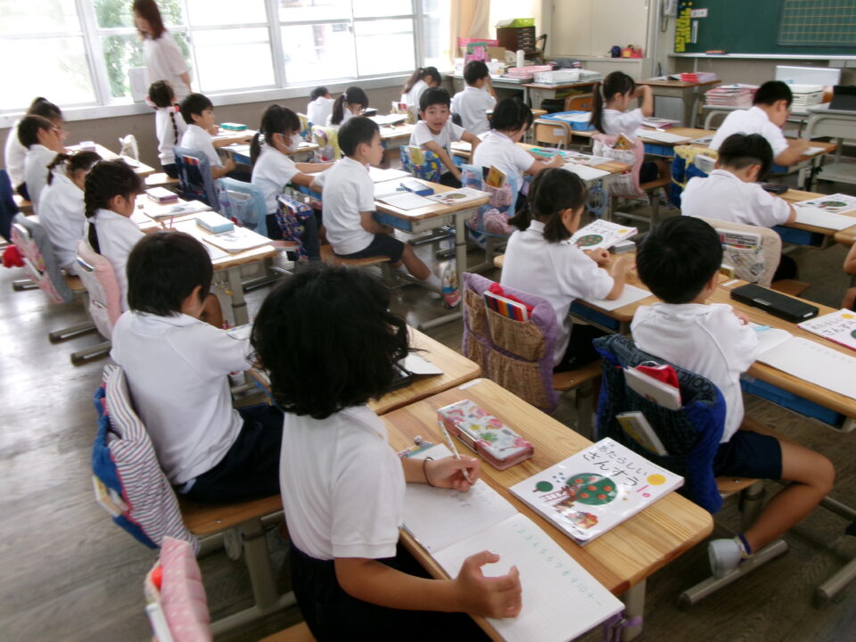 1年生の子たちもていねいな字で、ひらがなや習った漢字も書いていますね。
