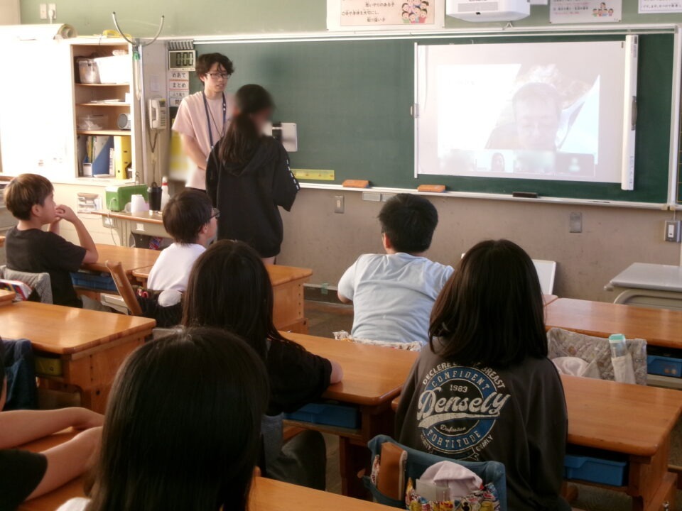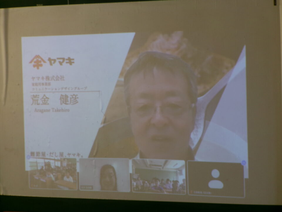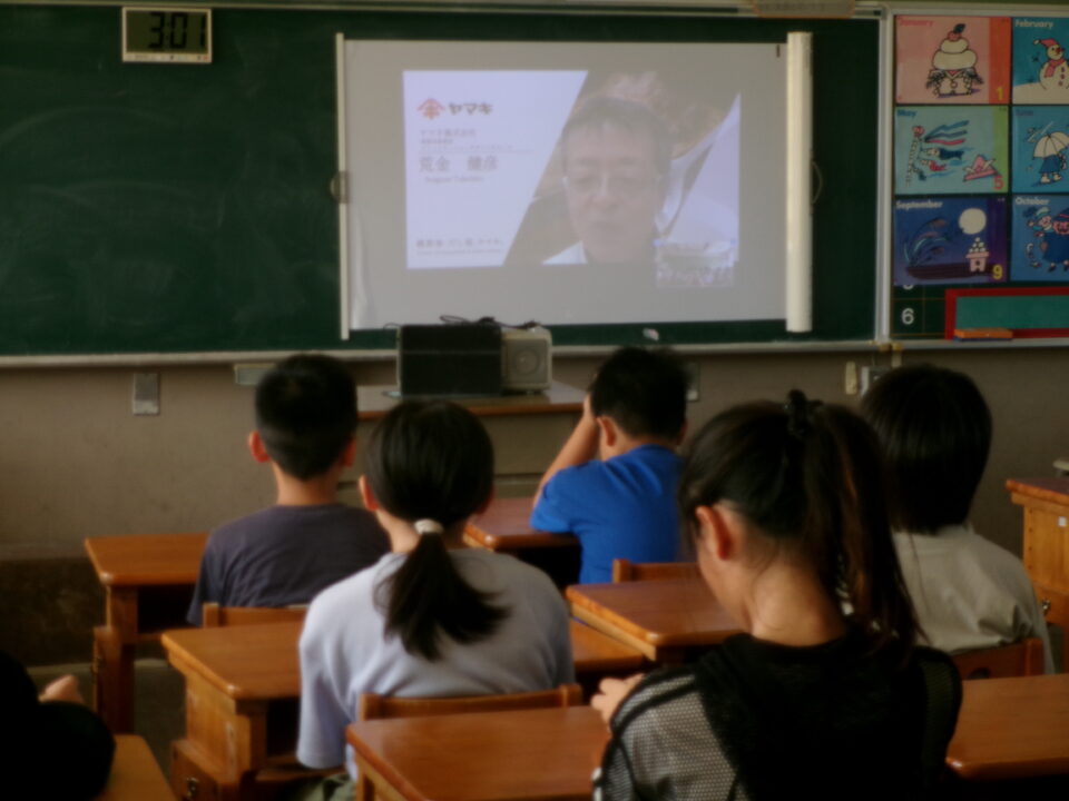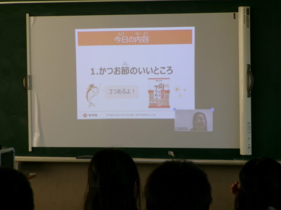 先日、5年生はかつおぶし削りの体験をしましたが、今日はヤマキ株式会社の方とオンラインでお話をしていただきました。