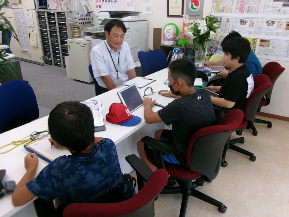 子どもたちは、学校で考えていった質問をして、それに答えていただくインタビュー方式を取りました。