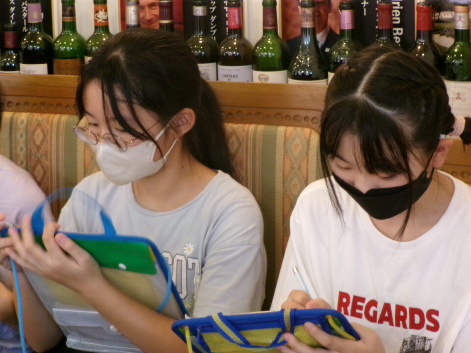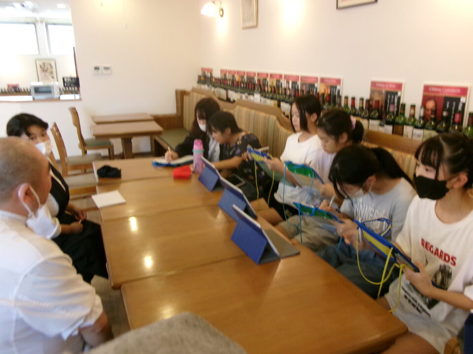 まずは、2階の喫茶コーナーに入らせていただき、質問をしたり、逆に質問されて子どもたちが答えたりと楽しくお話をさせていただきました。