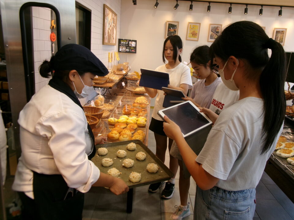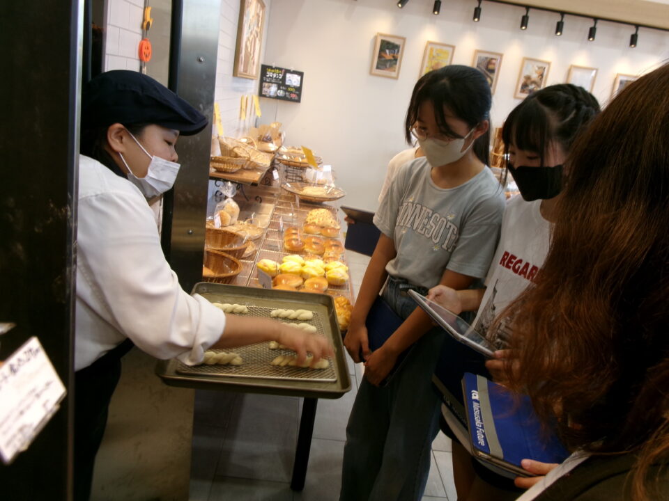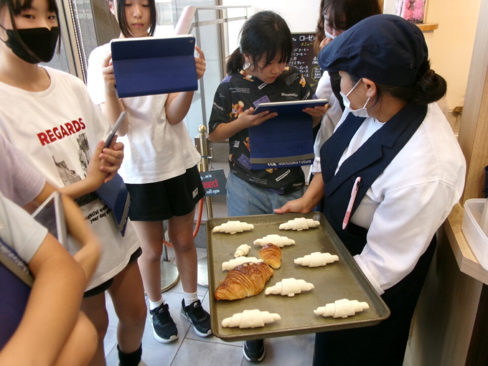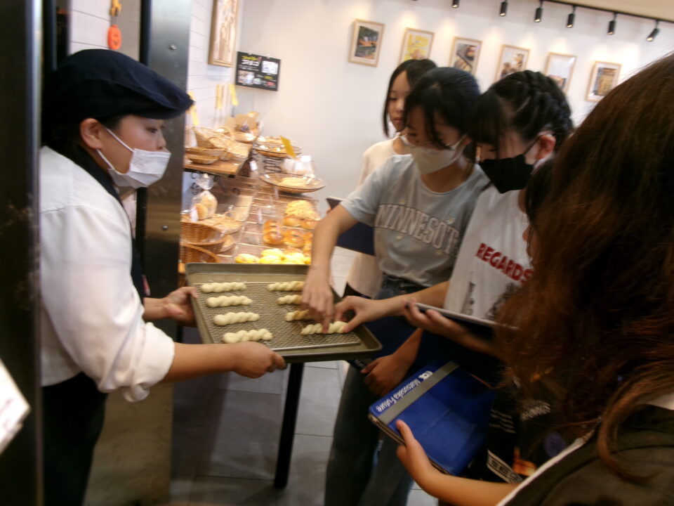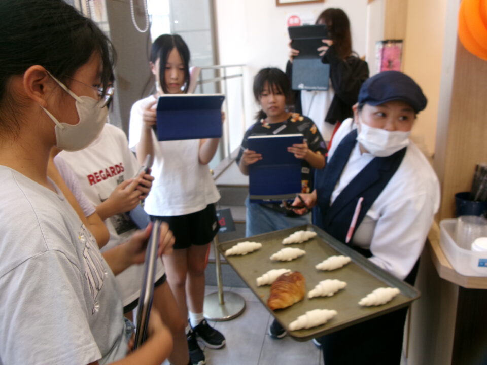 たくさんのパンが並んでいて、作っているところを見せてもらったり、焼く前のクロワッサンとできあがりとを比べて見せていただいたり、驚きもありました。