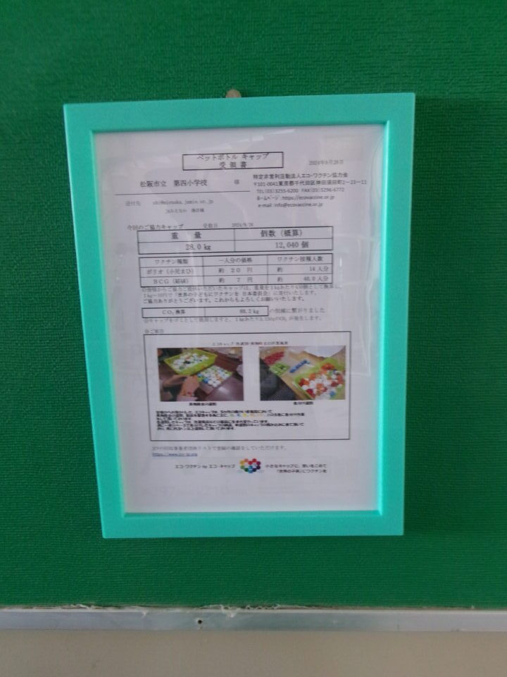 先日、JAみえなか市支店さんにお願いしたペットボトルキャップの受領書が届きました。