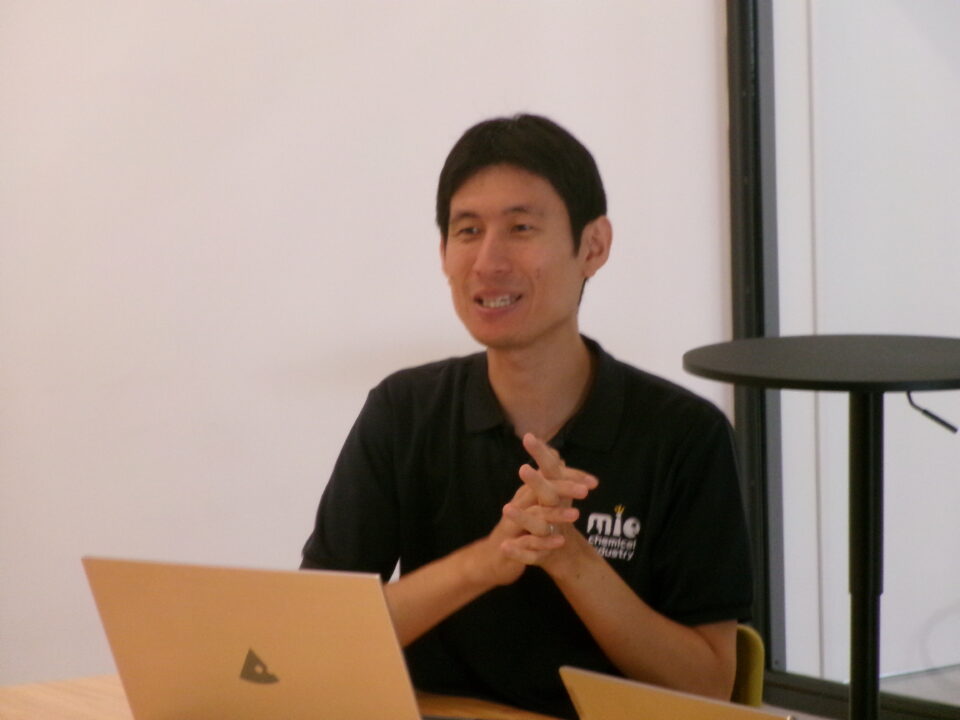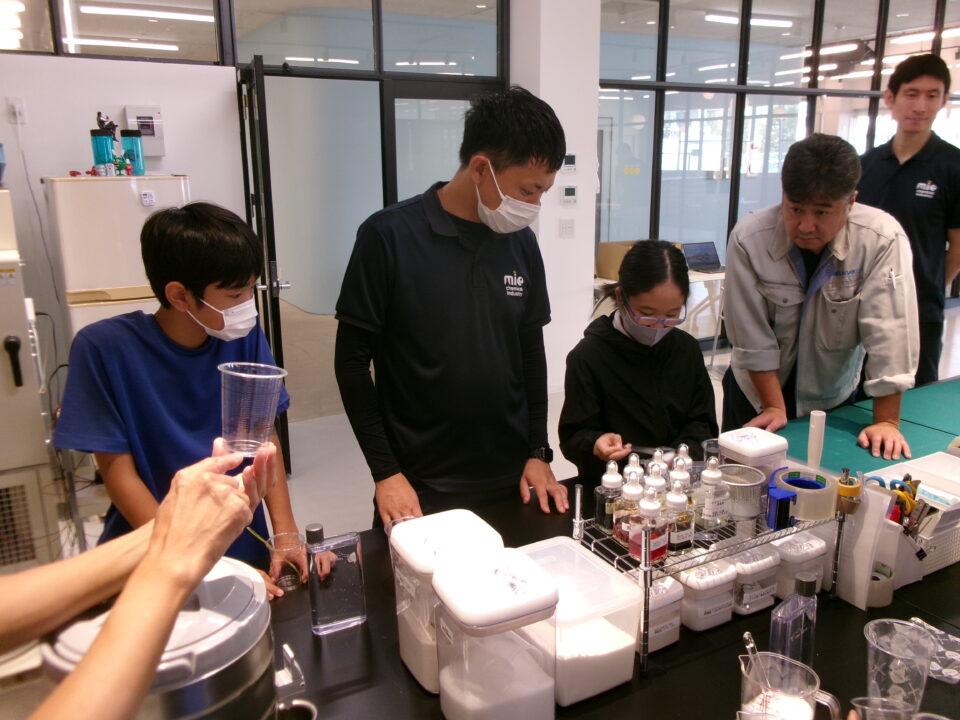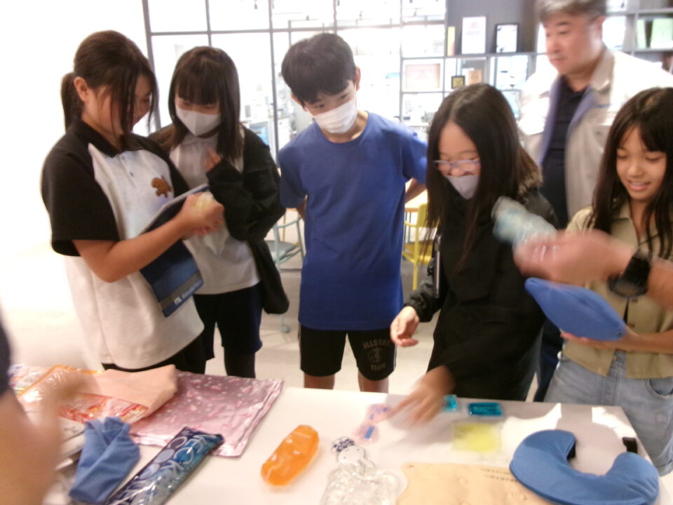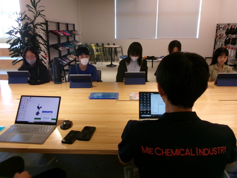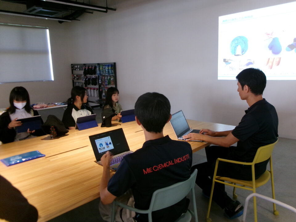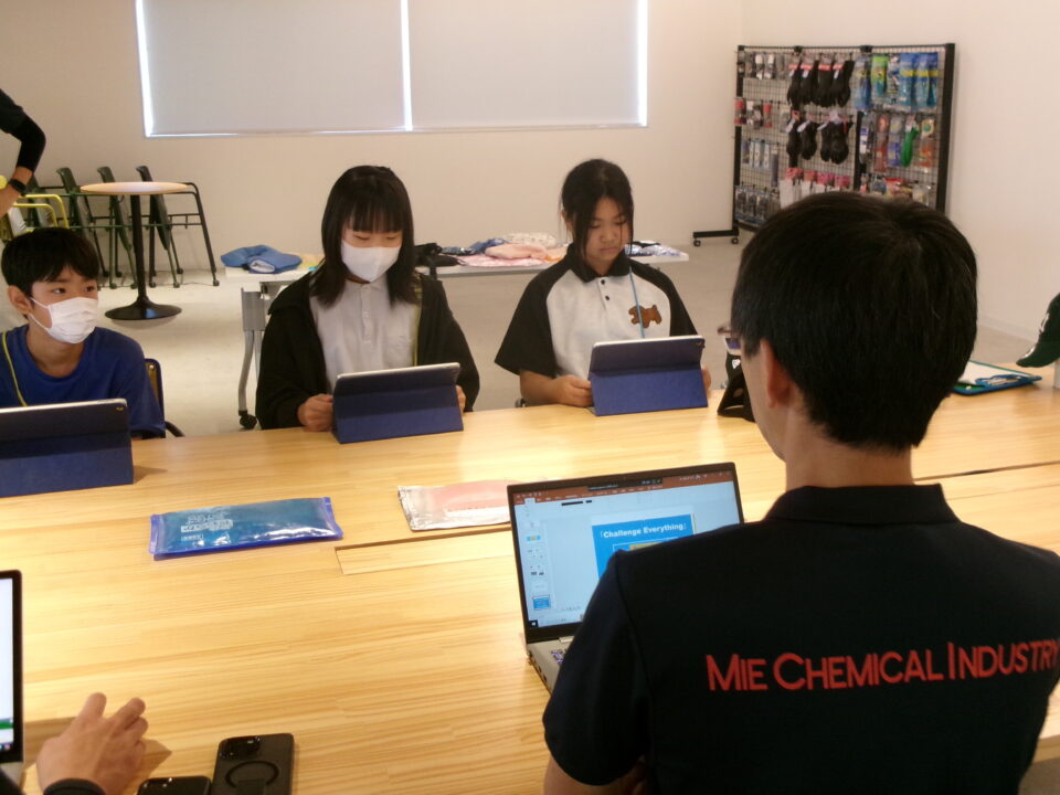 大口町にある三重化学工業株式会社さんに行ったグループは、まず会社について教えていただきました。みんなもよく知っている保冷剤を作っている会社です。