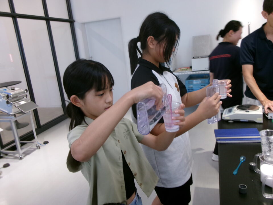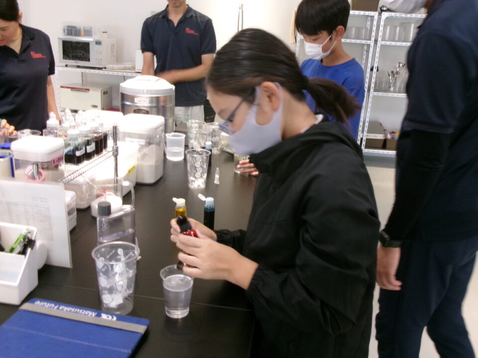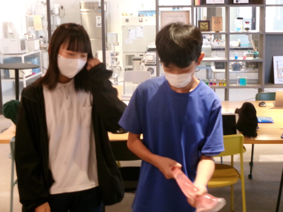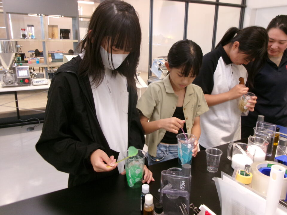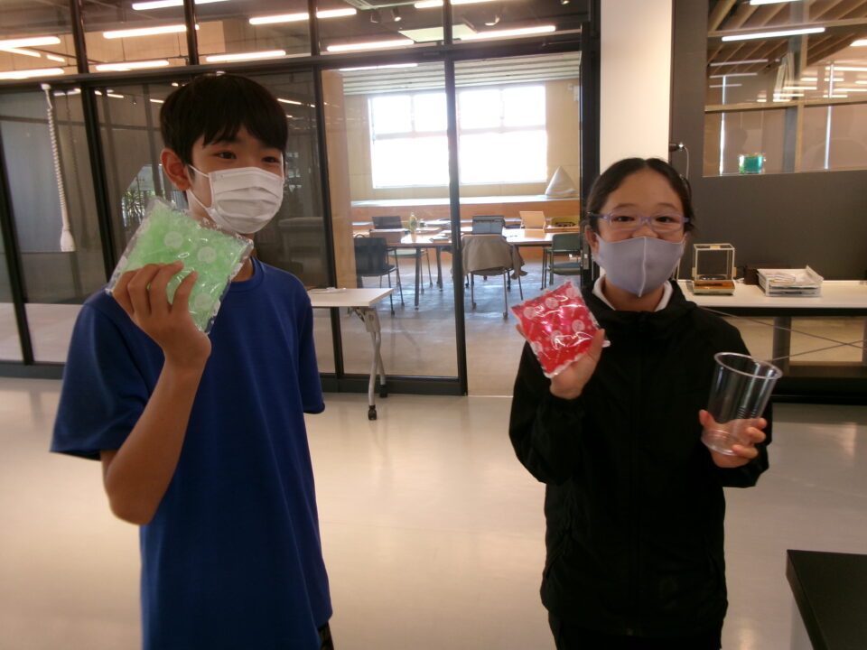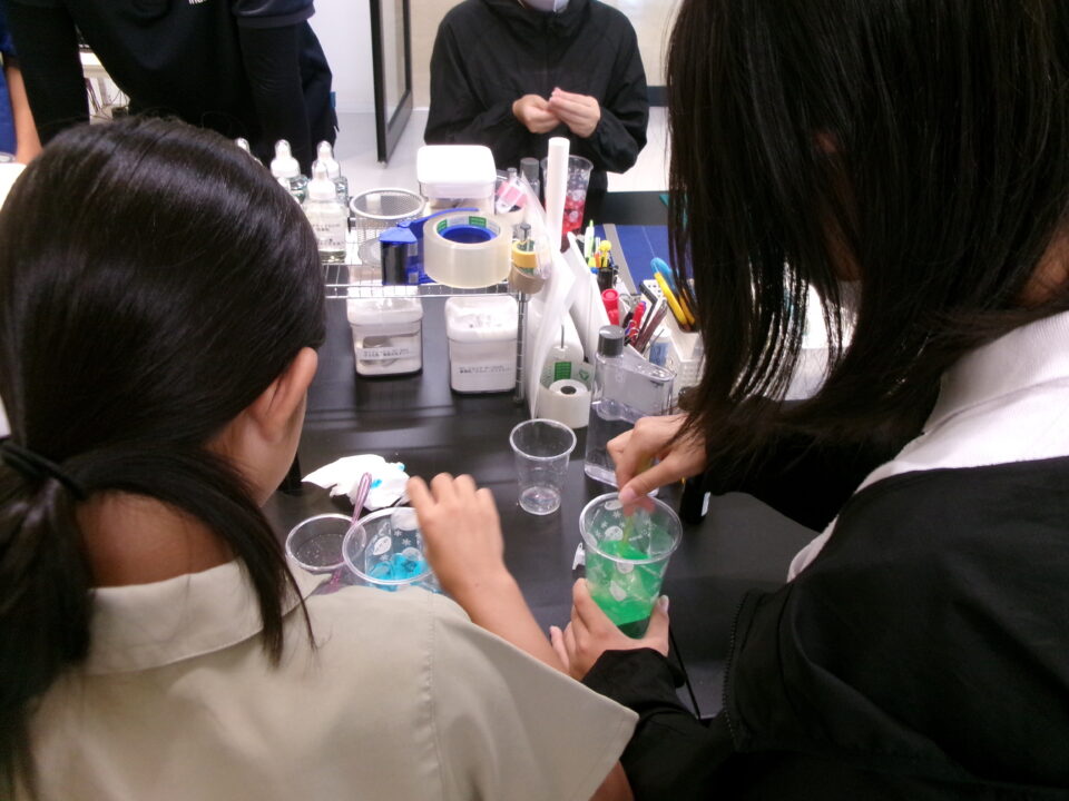 部屋を移動して隣りのLABOに入らせていただき、マイ保冷剤を作らせていただきました。自分の好きな色をつけさせていただき、お土産にいただきました。