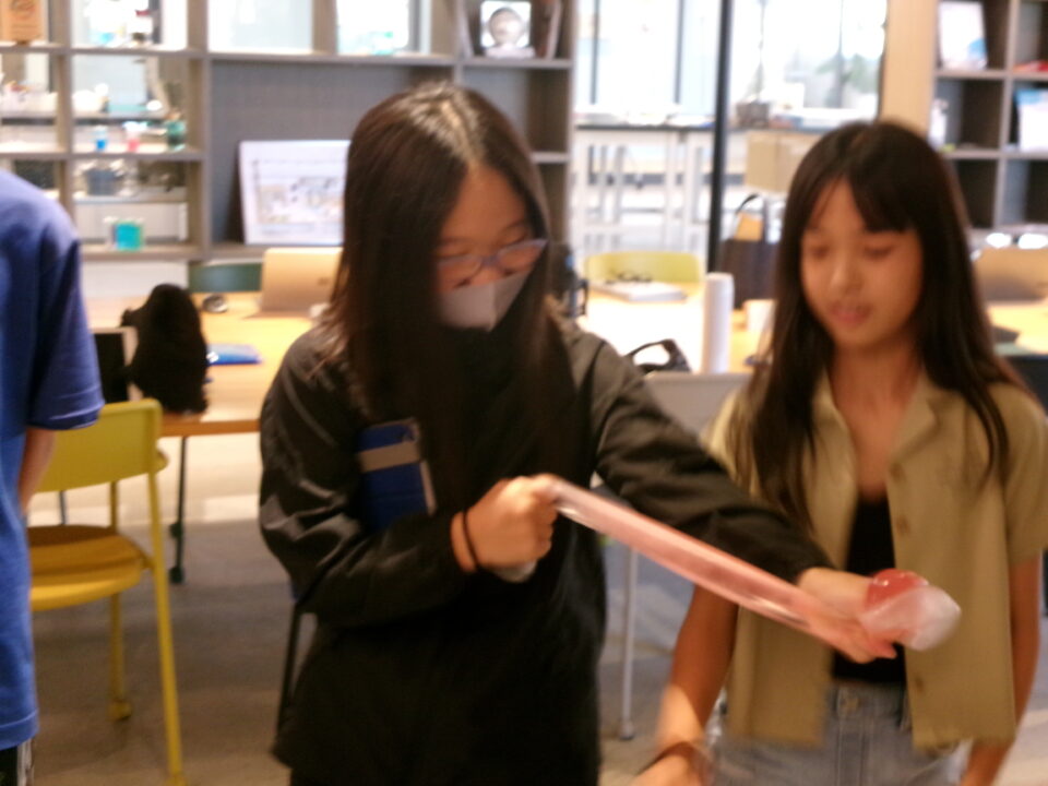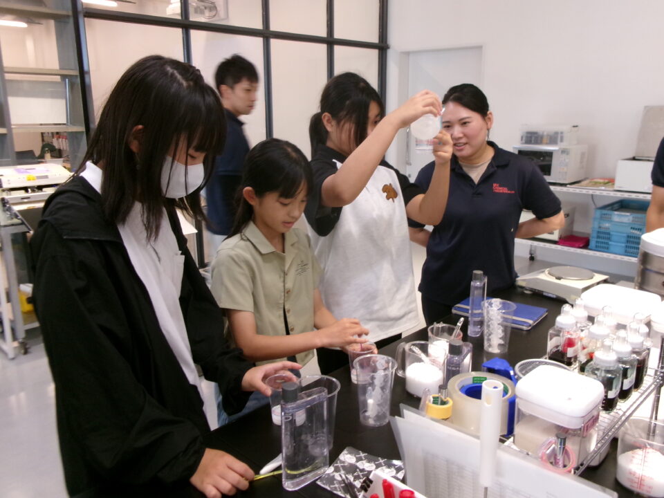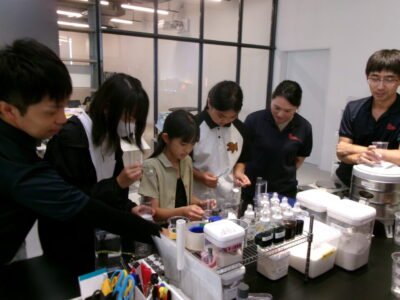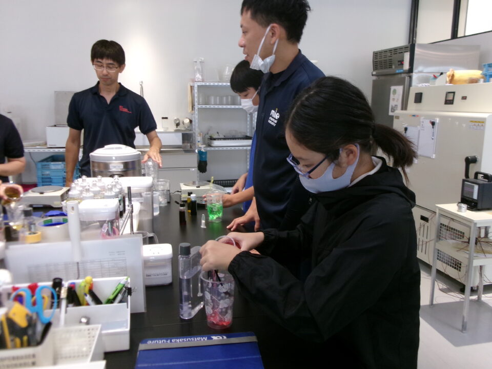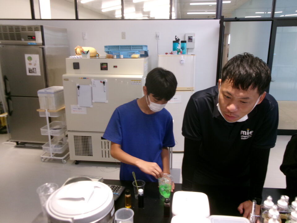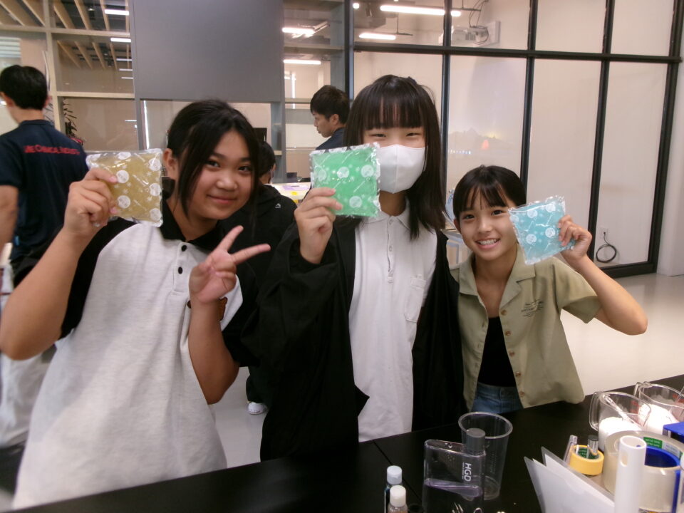 部屋を移動して隣りのLABOに入らせていただき、マイ保冷剤を作らせていただきました。自分の好きな色をつけさせていただき、お土産にいただきました。