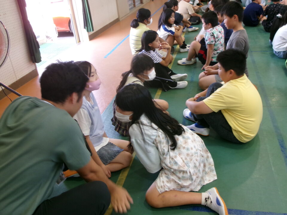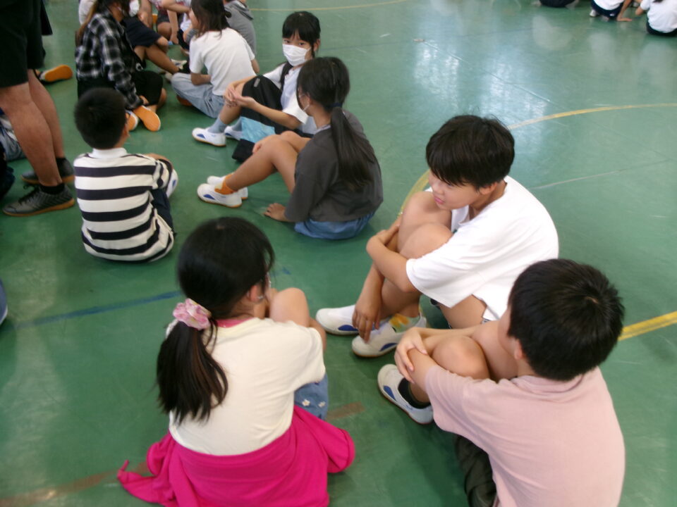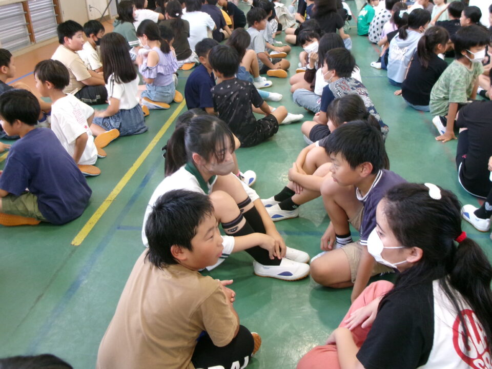 このあと、児童会役員さんの進行で目標のあいさつについてかまあいトークをしました。