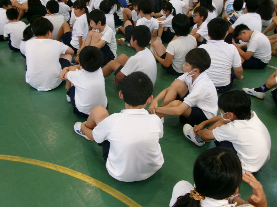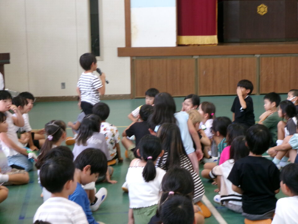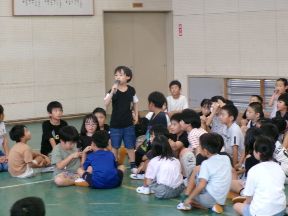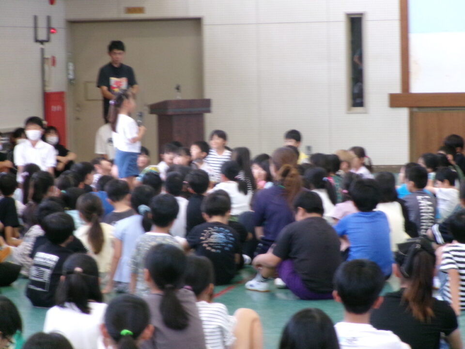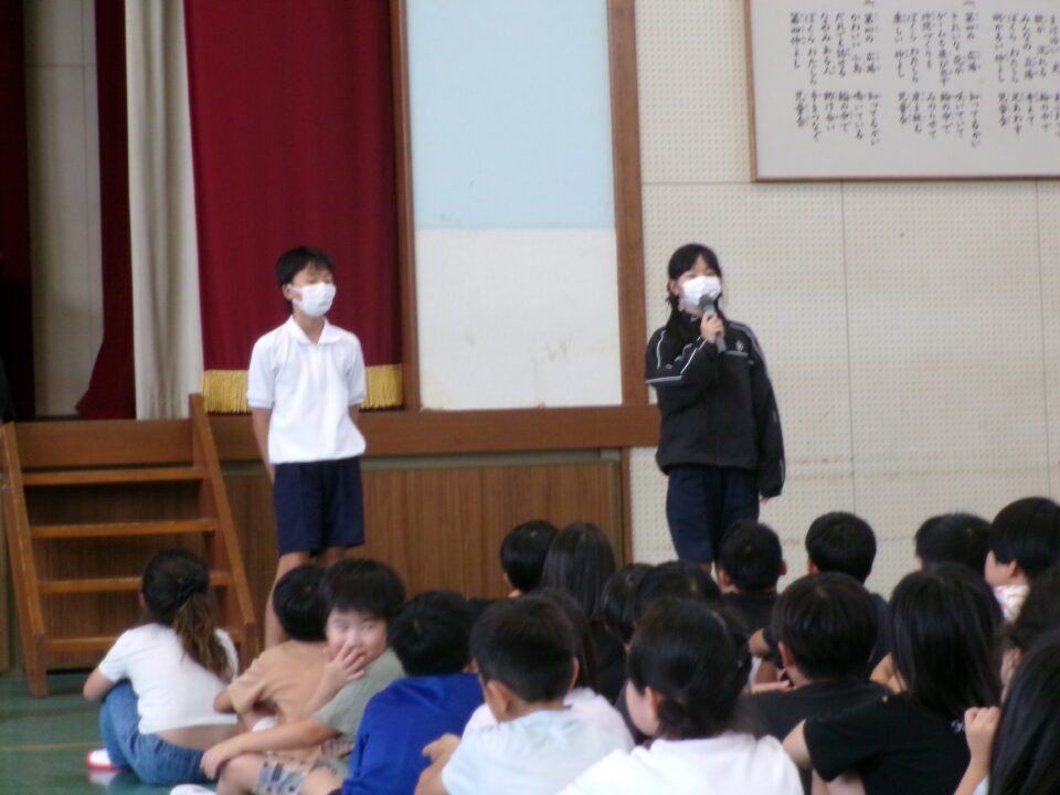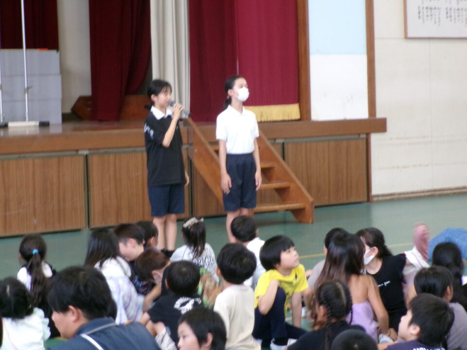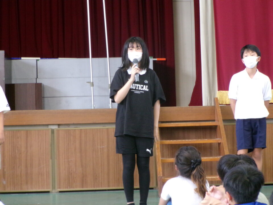 最後に、前期児童会役員の退任のあいさつがありました。半年間、444人の先頭に立ってリードをしてくれました。ごくろうさまでした。