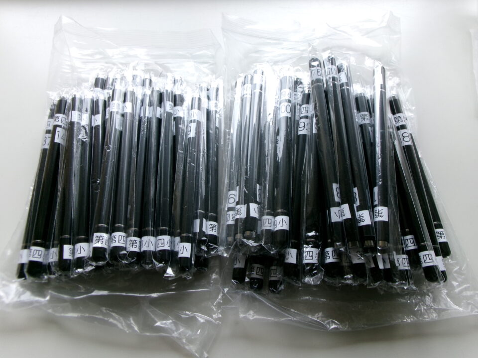 オーミヤ建設様には、平成21年から毎年子どもたちのために10万円分の寄贈をしていただいています。今年は、タッチペンを85本購入していただきました。