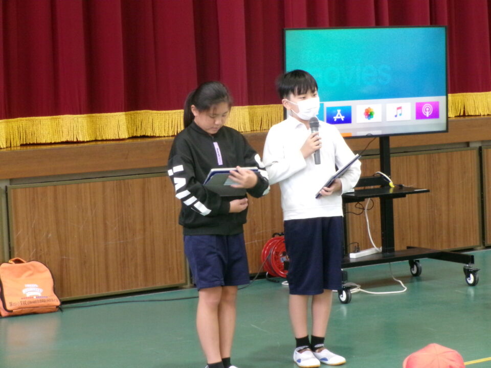 まず、お友だちのことについてクイズをしました。お友だちが学校で学習していることなど、第四小学校で学習していることと似ていることが多かったですね。