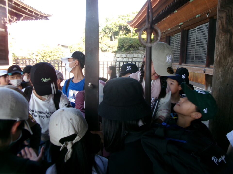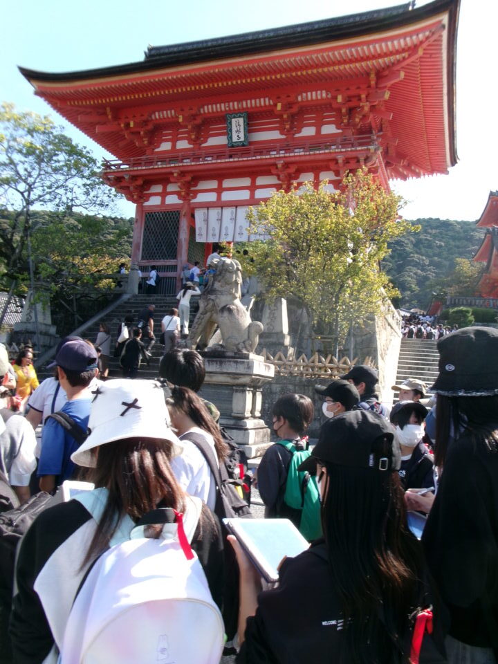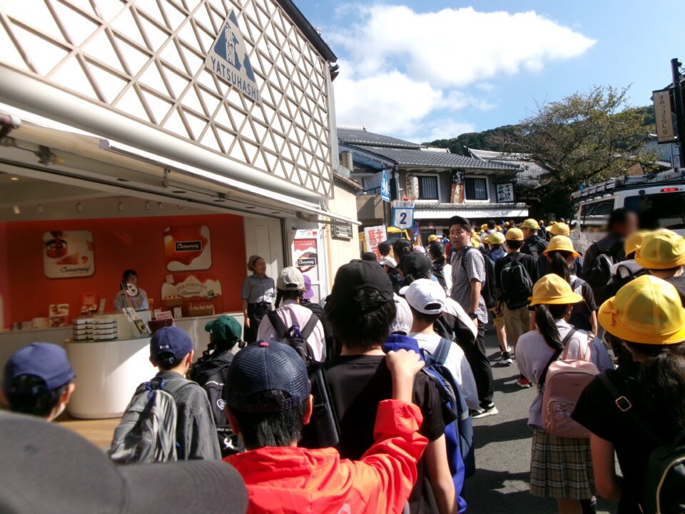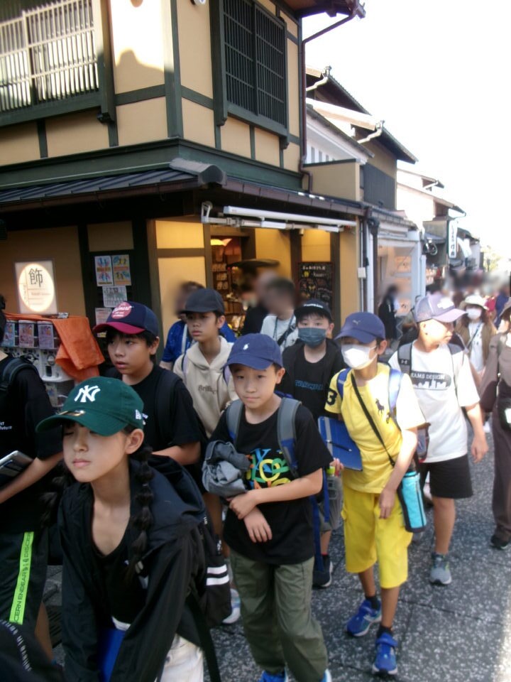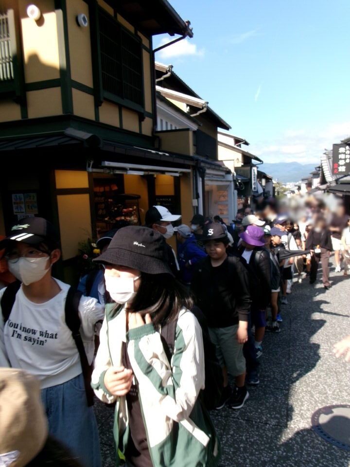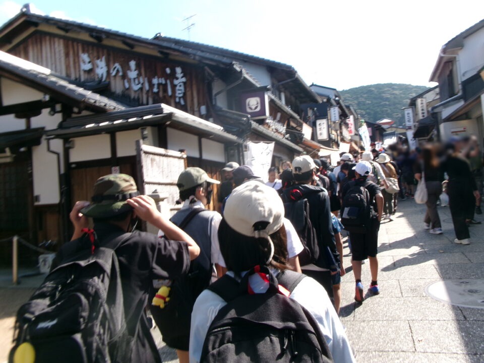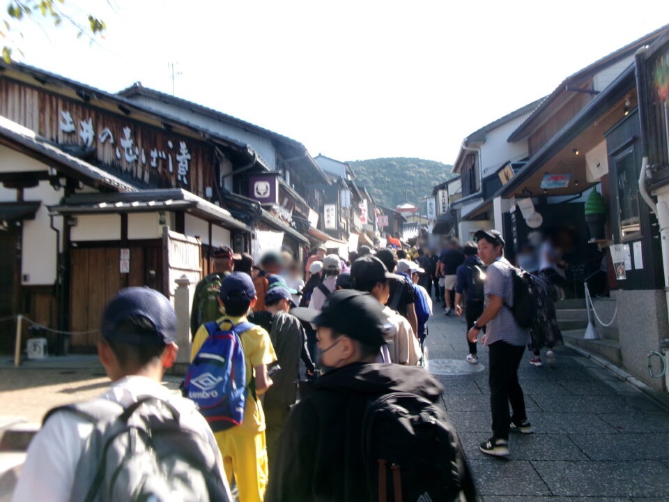 バスガイドさんについて、清水坂を上がっていきました。途中には、お土産屋さんがいっぱい(^^♪
