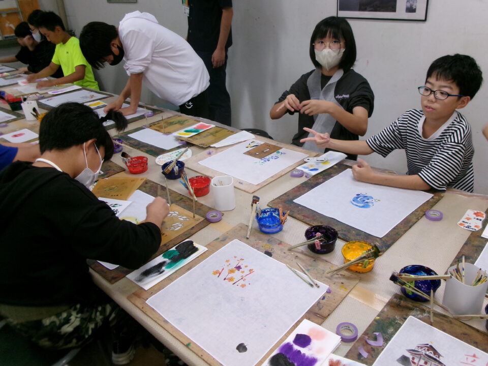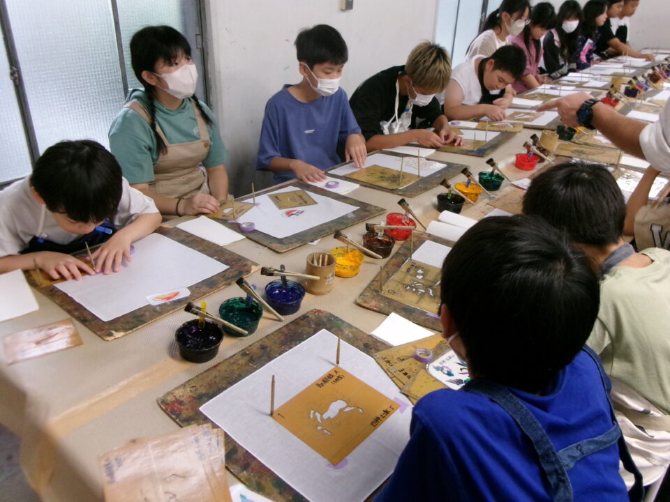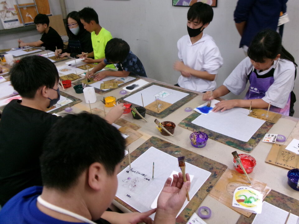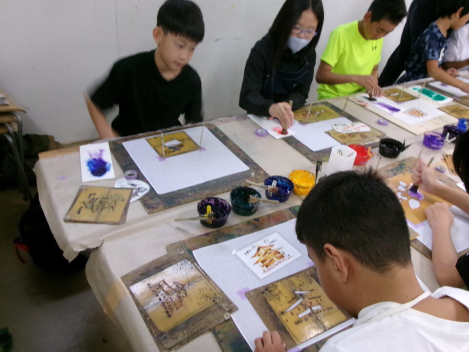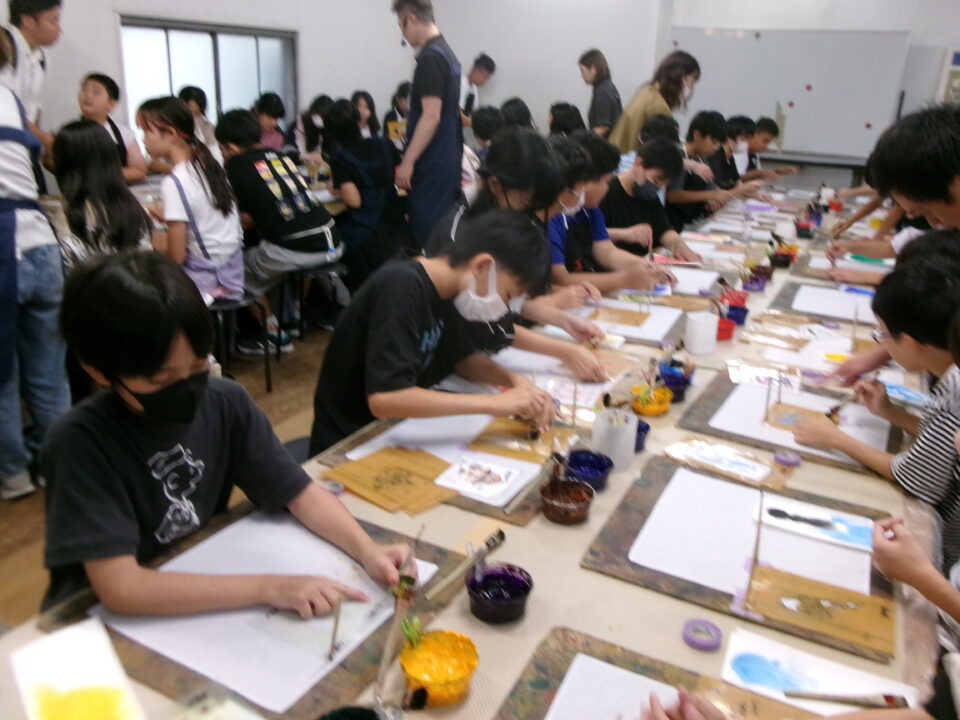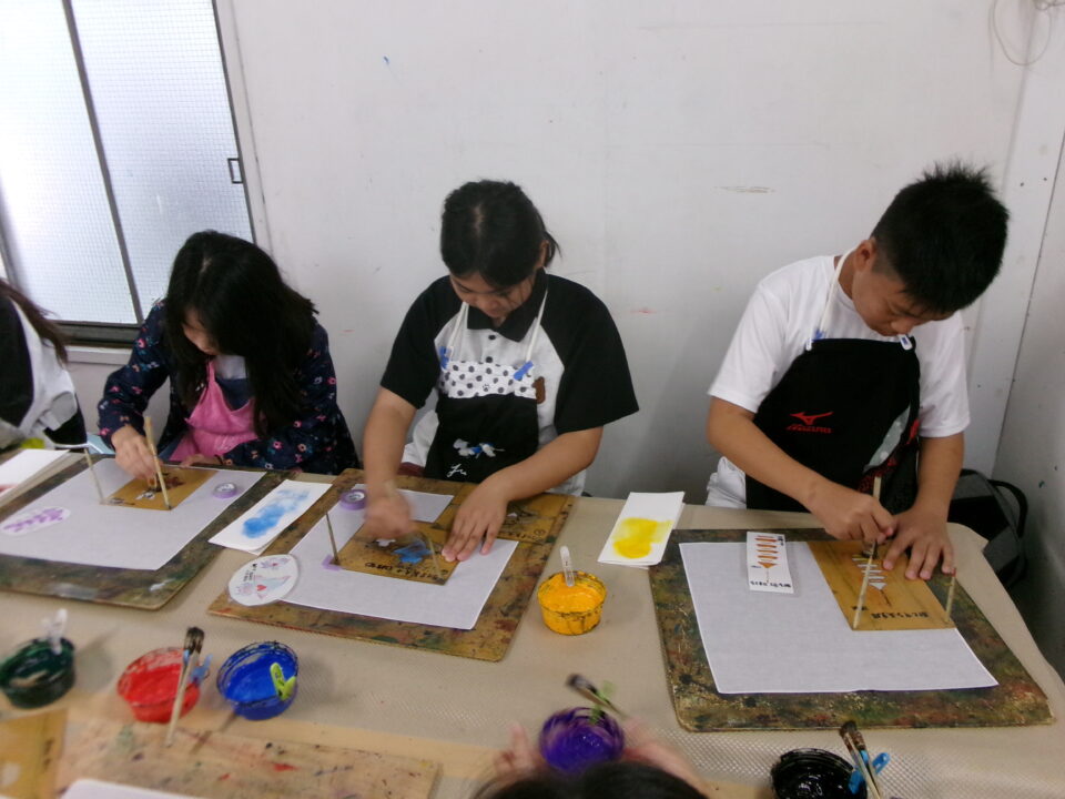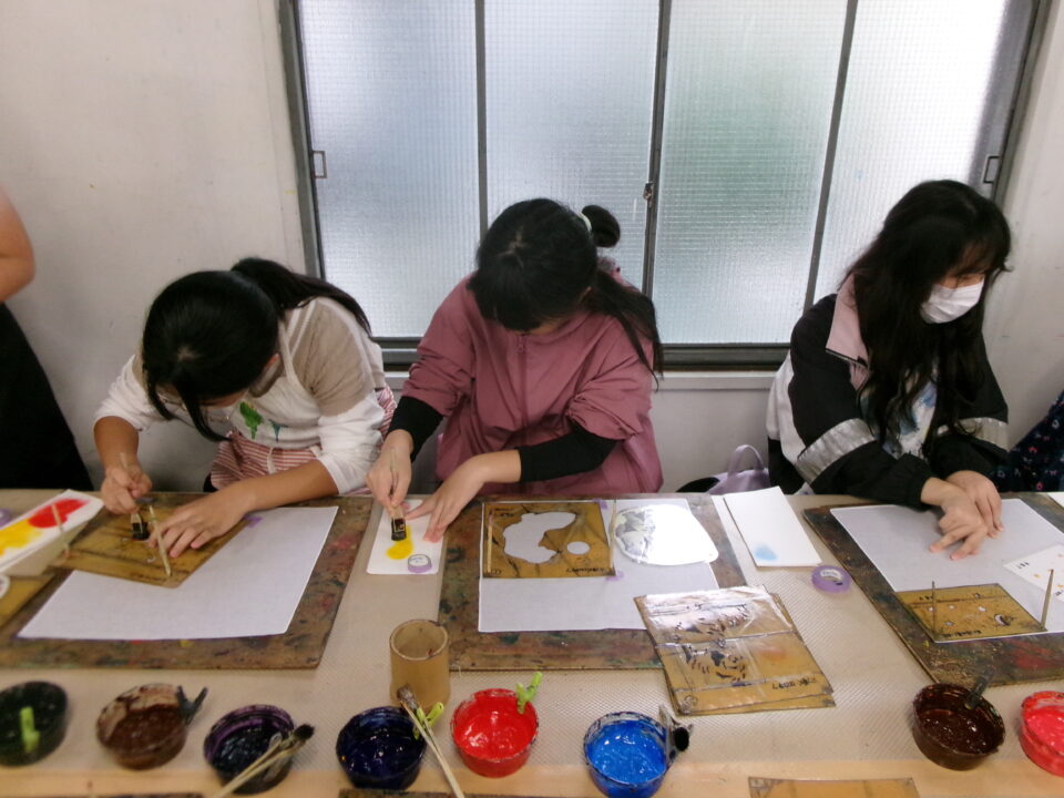ホーム > 学校活動の様子 友禅染体験(ゆうぜんぞめたいけん)by丸益西村屋(まるますにしむらや) 2日目(ふつかめ)最初(さいしょ)の行先(ゆきさき)は、丸益西村屋(まるますにしむらや)さんでした。 ここでは、ハンカチに自分(じぶん)で選(えら)んだ図柄《ずがら)を友禅染《ゆうぜんぞ)めできます。 シェアする Twitter でシェア はてなブックマークに保存 LINE でシェア Facebook でシェア Pocket に保存 Feedly で購読 関連投稿 学校活動の様子 卒業式の練習 学校活動の様子 交通安全教室(こうつうあんぜんきょうしつ)1年生(ねんせい)・給食(きゅうしょく) 学校活動の様子 6年生(ねんせい)を送(おく)る会(かい)をしました! 学校活動の様子 / コミュニティ・スクール 調理実習(ちょうりじっしゅう) ゆで野菜(やさい) 5-1 学校活動の様子 学習(がくしゅう)の様子(ようす) 2年生(ねんせい) 学校活動の様子 認証式(にんしょうしき)がありました。№1 前の投稿 6年生(ねんせい)修学旅行(しゅうがくりょこう)2日目(ふつかめ) 次の投稿 次(つぎ)の見学地(けんがくち)は、二条城(にじょうじょう)でした。