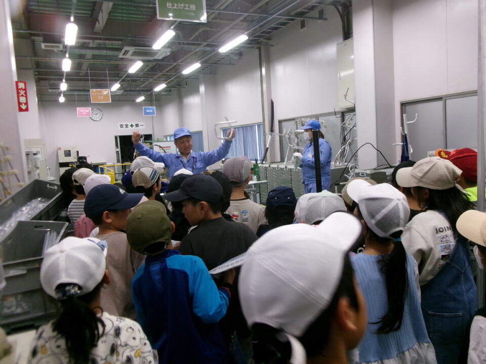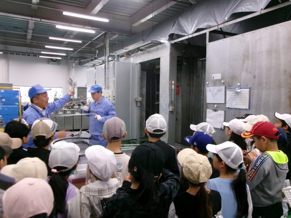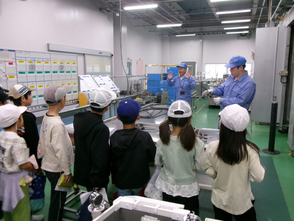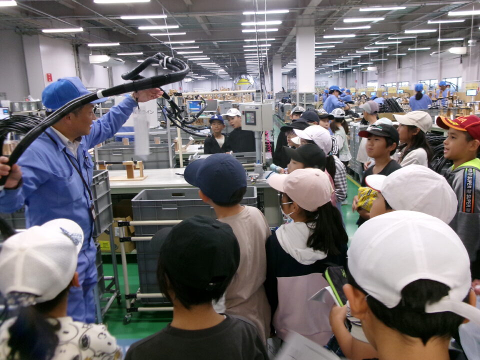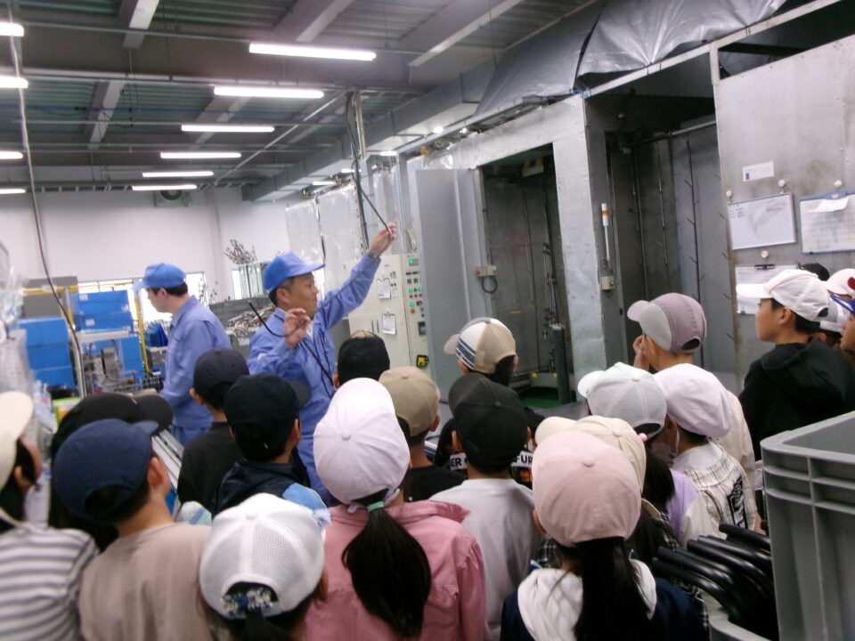 チューブを作っている工場の中を見学させていただきました。みんなふだんは見ることがないものなので、興味津々でしたね。