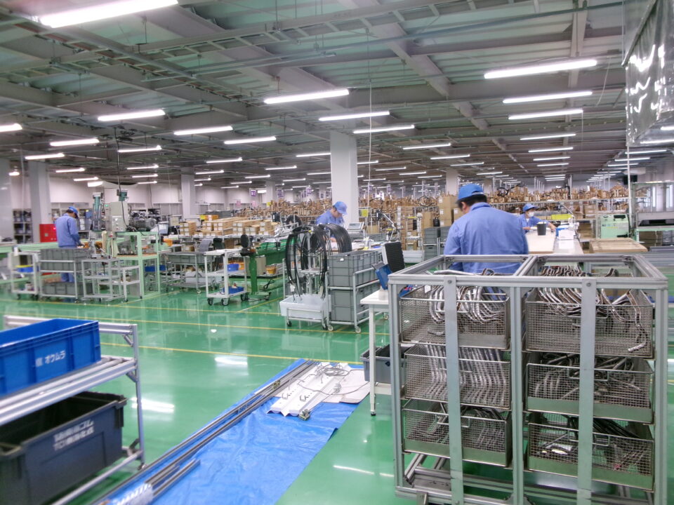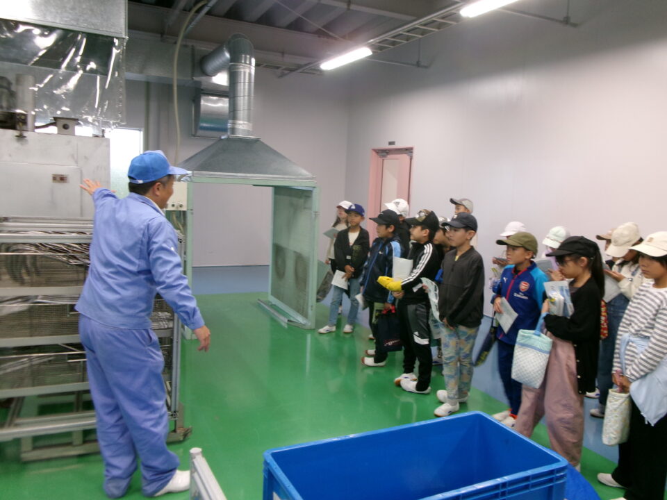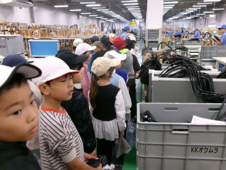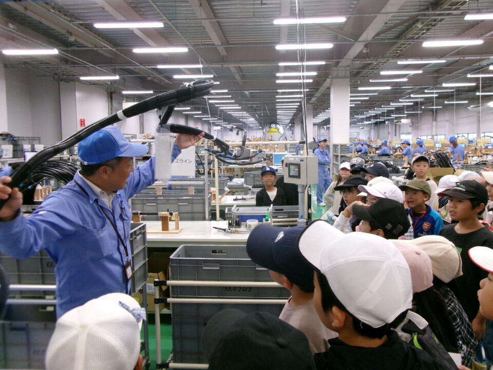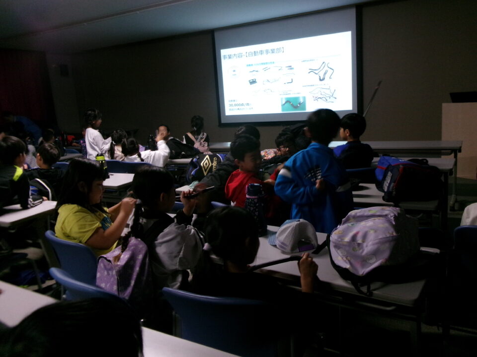 チューブを作っている工場の中を見学させていただきました。みんなふだんは見ることがないものなので、興味津々でしたね。