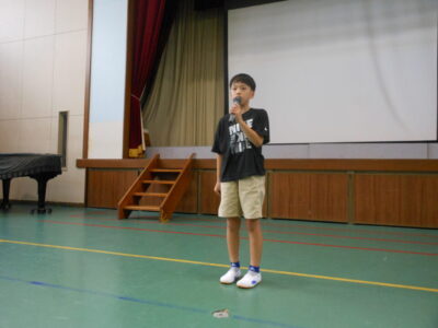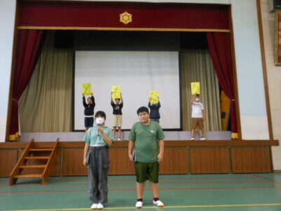 はじめに、児童会役員より、挨拶と全校目標の発表がありました。