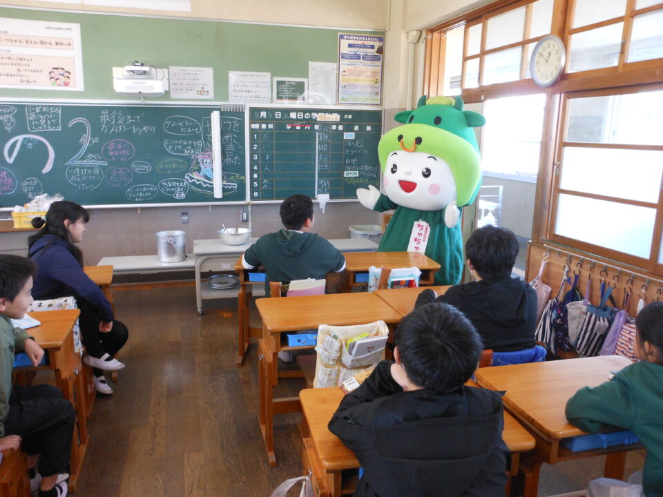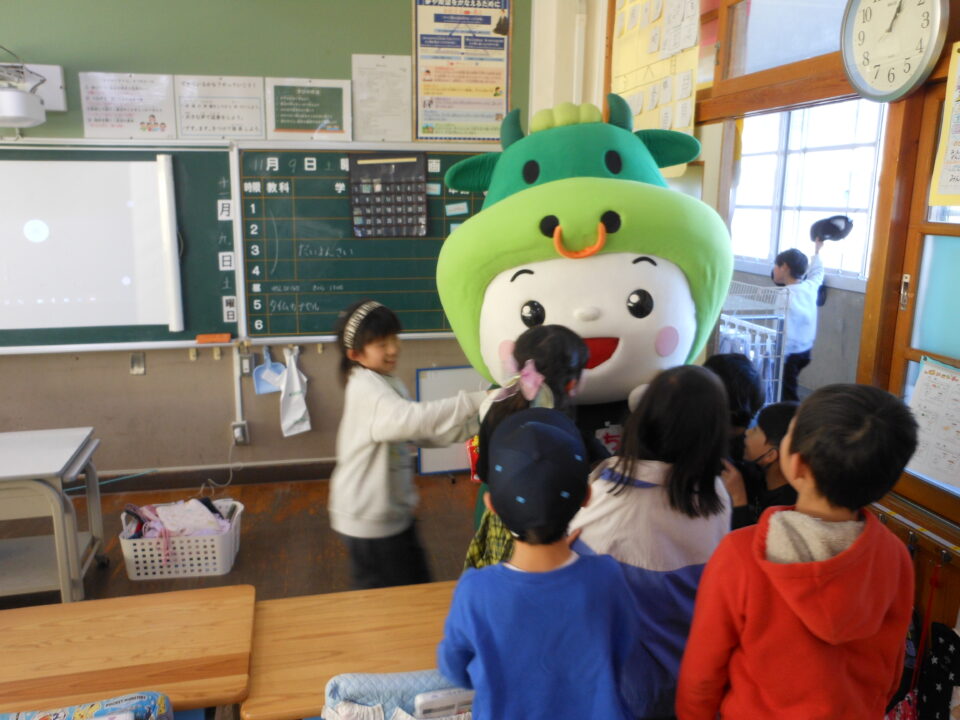 ホーム > 学校活動の様子 給食時間(きゅうしょくじかん)に、ちゃちゃもがやってきた!! なんと、給食準備(きゅうしょくじゅんび)の時間(じかん)にちゃちゃもが応援(おうえん)にやってきてくれました! 学習発表(がくしゅうはっぴょう)や作品(さくひん)の展示(てんじ)など、がんばった子(こ)どもたちの激励(げきれい)に各(かく)クラスをまわってくれました! ちゃちゃも、ありがとう! ちゃちゃもが来(き)てくれて嬉(うれ)しかったね💛 シェアする Twitter でシェア はてなブックマークに保存 LINE でシェア Facebook でシェア Pocket に保存 Feedly で購読 関連投稿 学校活動の様子 1年生(ねんせい) タブレット端末(たんまつ)貸与式(たいよしき)をしました。 学校活動の様子 4年生(ねんせい) 遠足(えんそく) 学校活動の様子 教室の掲示物 学校活動の様子 避難訓練 学校活動の様子 / コミュニティ・スクール 5年生(ねんせい) もちつき準備(じゅんび) 学校活動の様子 もうすぐ卒業(そつぎょう)・・・今(いま)をしっかり楽(たの)しもうね! 前の投稿 だいよん祭(さい) 作品鑑賞(さくひんかんしょう)をしました。 次の投稿 校区(こうく)に住(す)む友(とも)だちが来(き)てくれたよ!