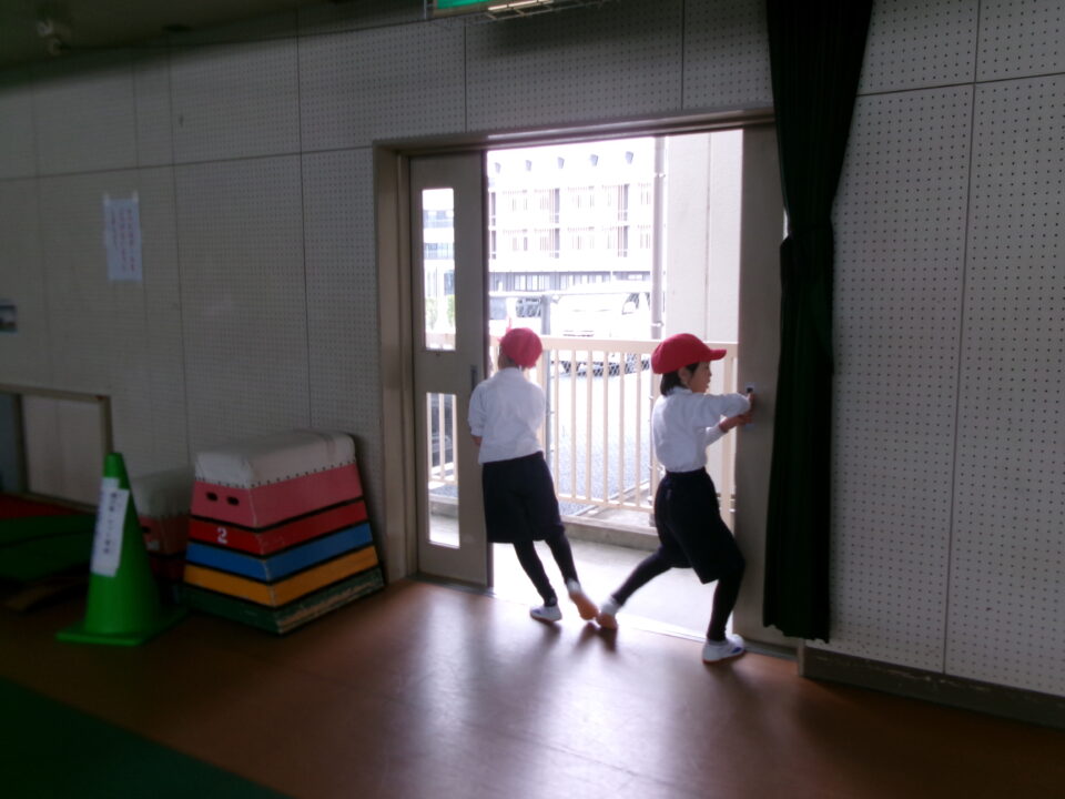 2年生の体育の時間でした。体育館で空気の入れ替えをするために進んで開ける姿がありました。