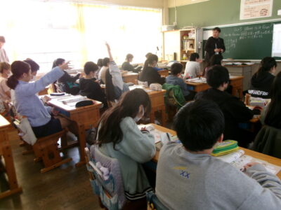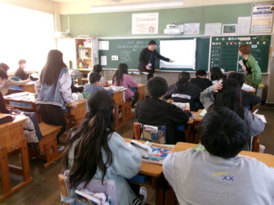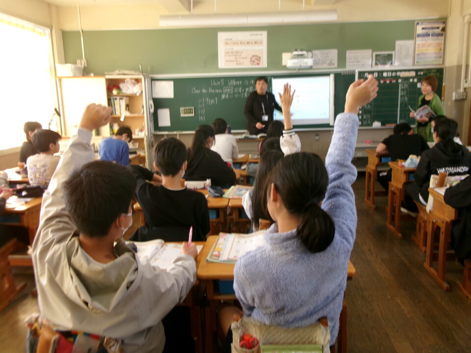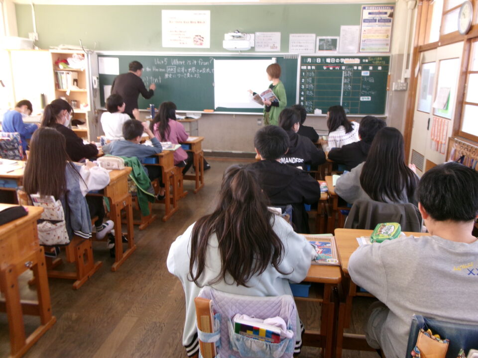 6年2組は、鎌中の英語の先生の出前授業がありました。