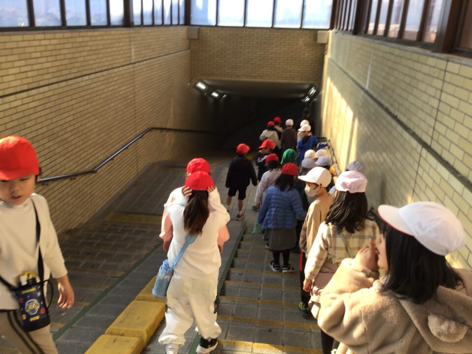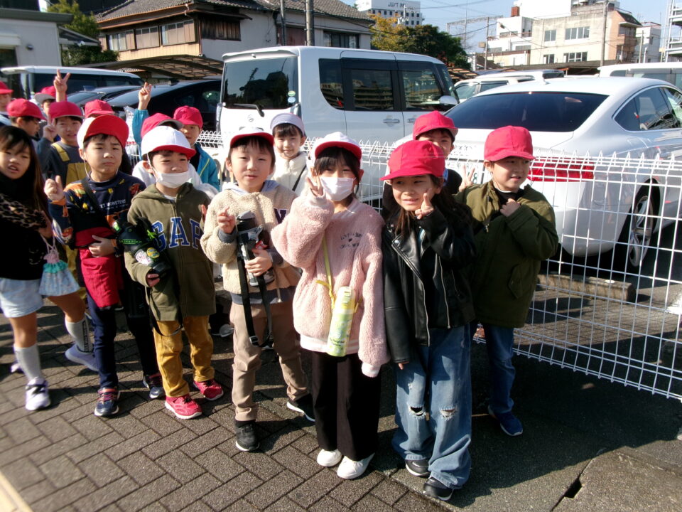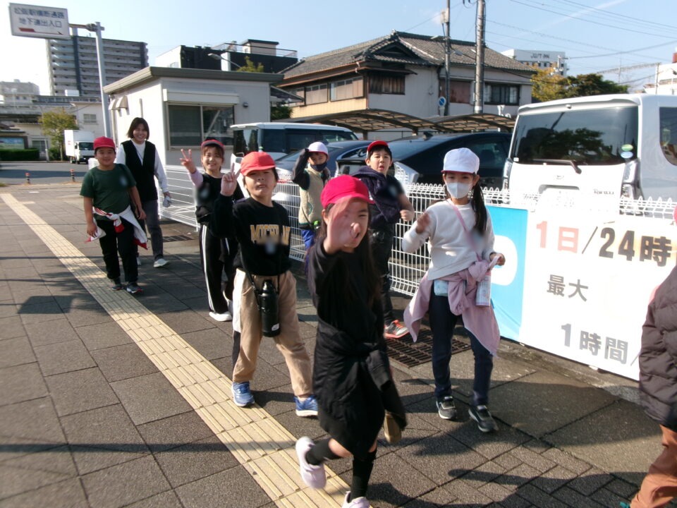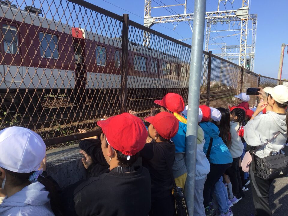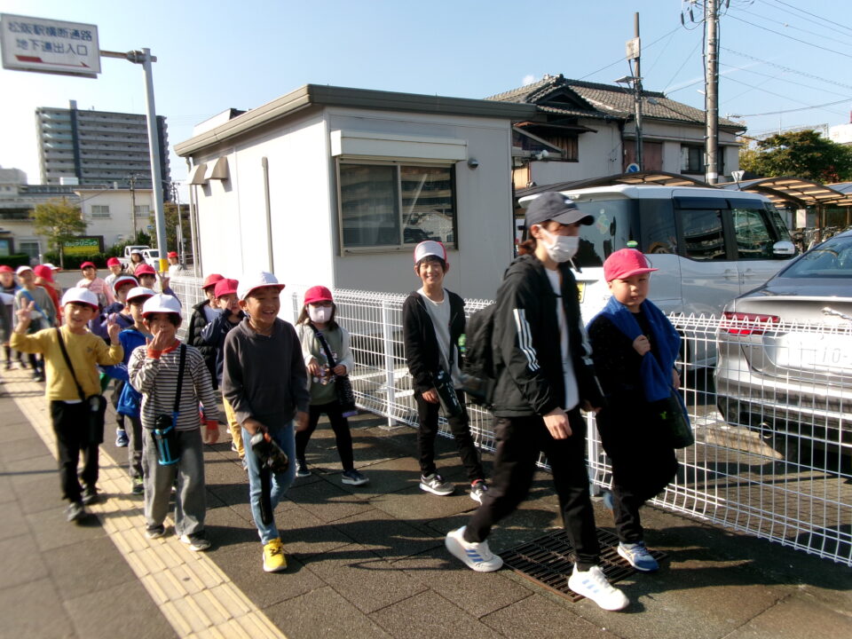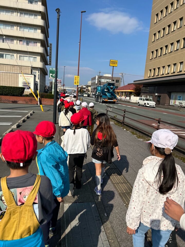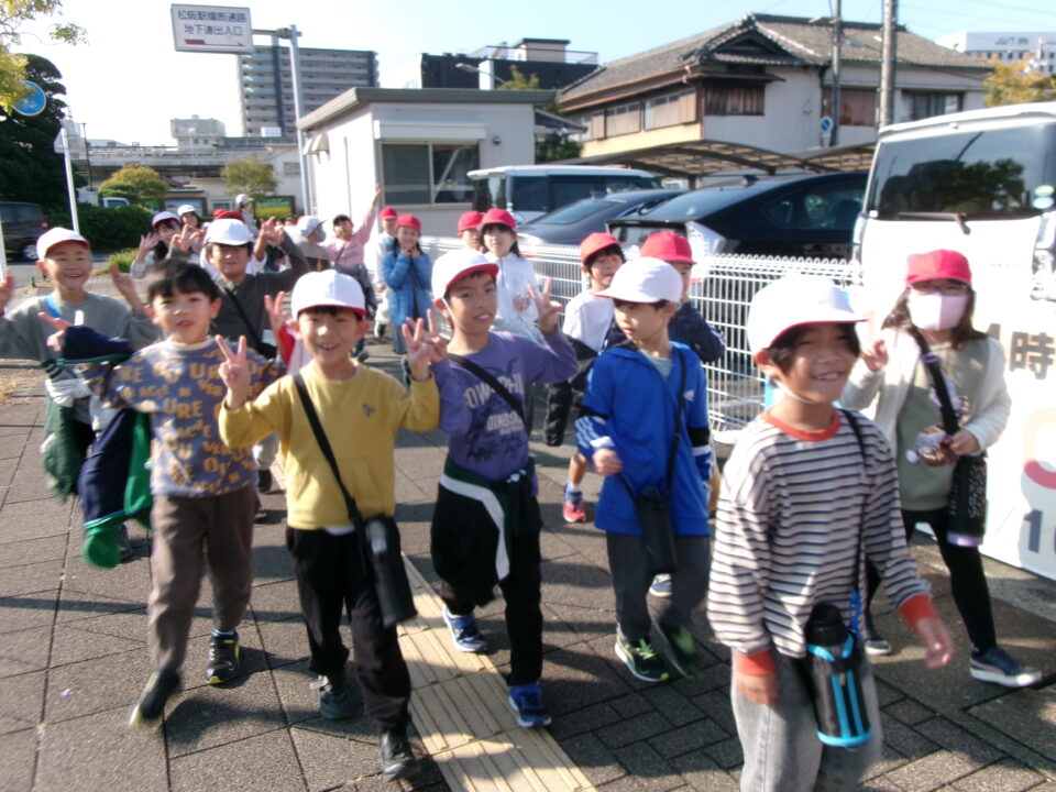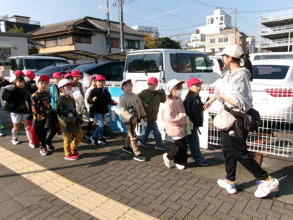 学校を出発して、がんばって松阪駅方面へ向かい、駅の周りの様子や電車を見学してきました。