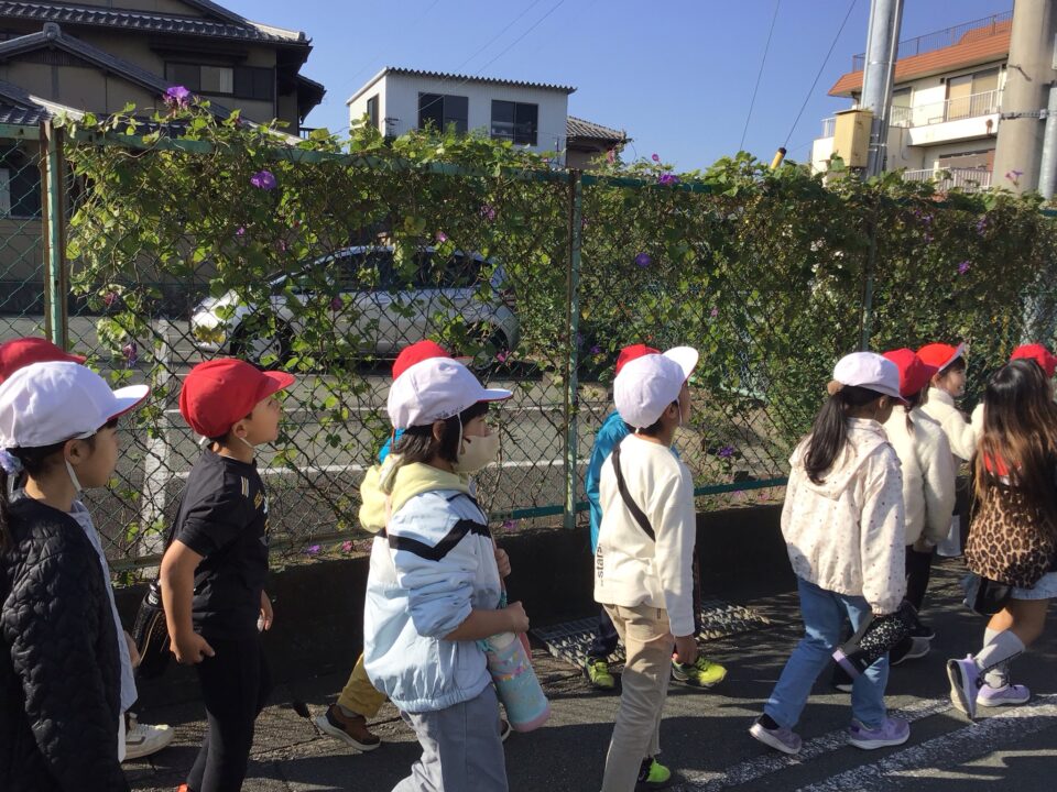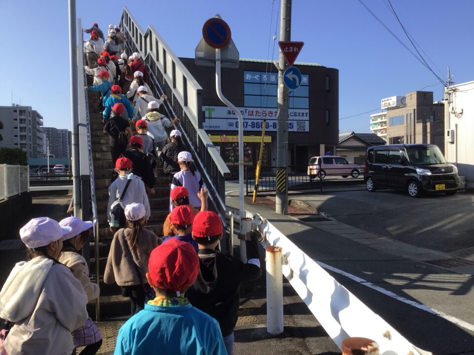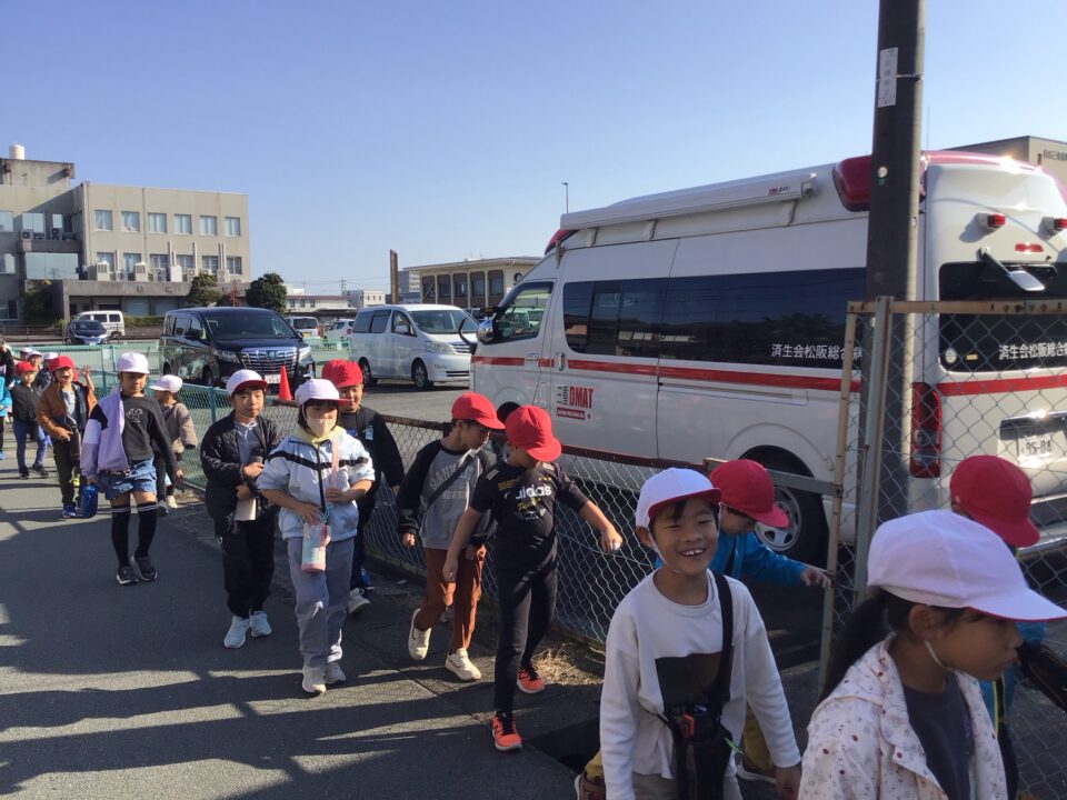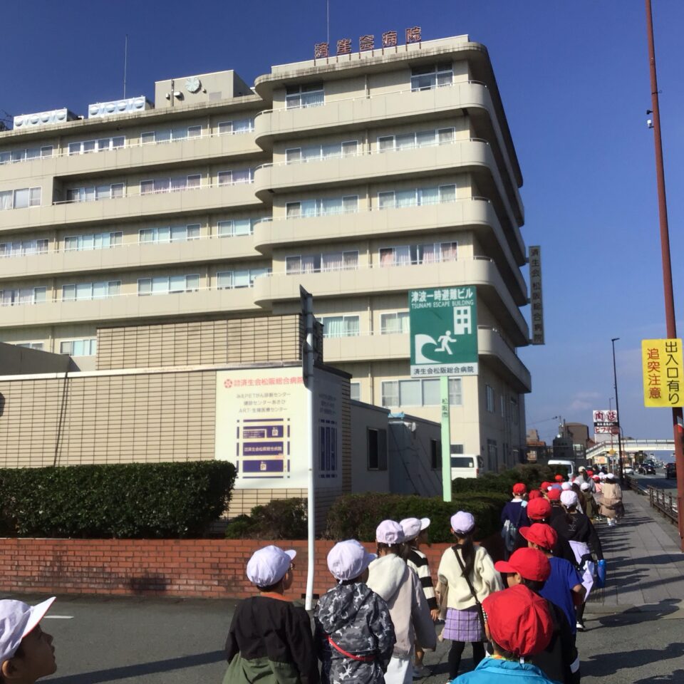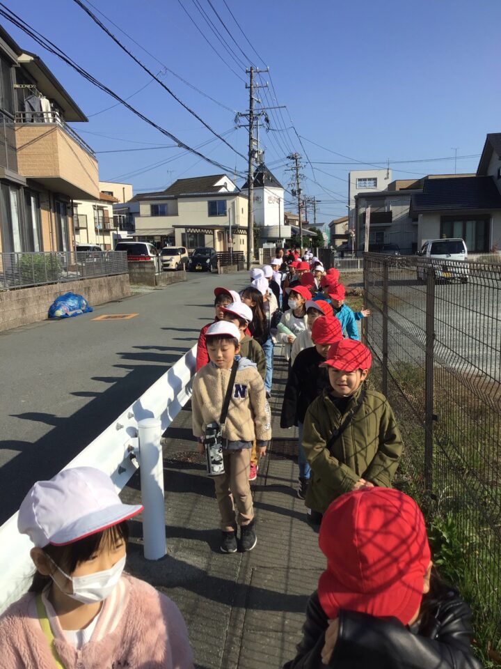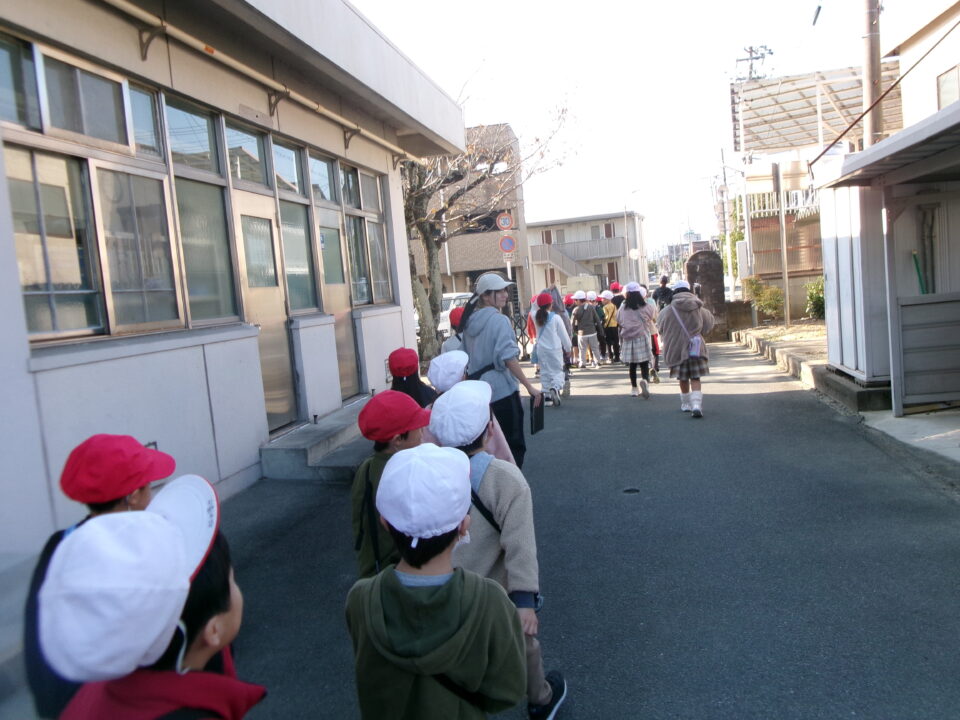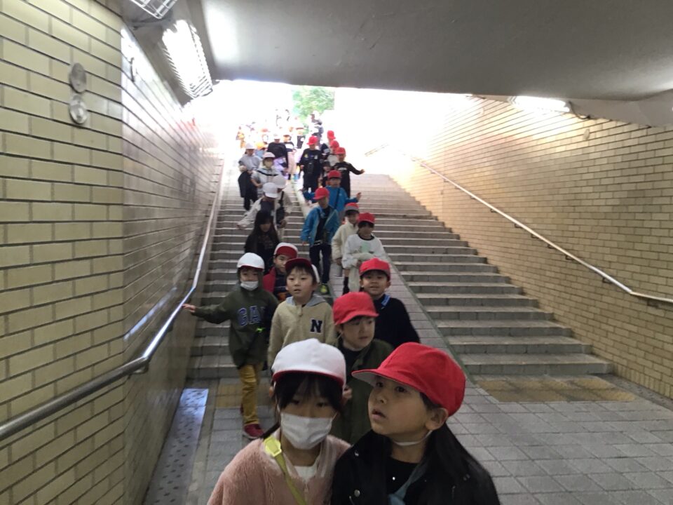 学校を出発して、がんばって松阪駅方面へ向かい、駅の周りの様子や電車を見学してきました。