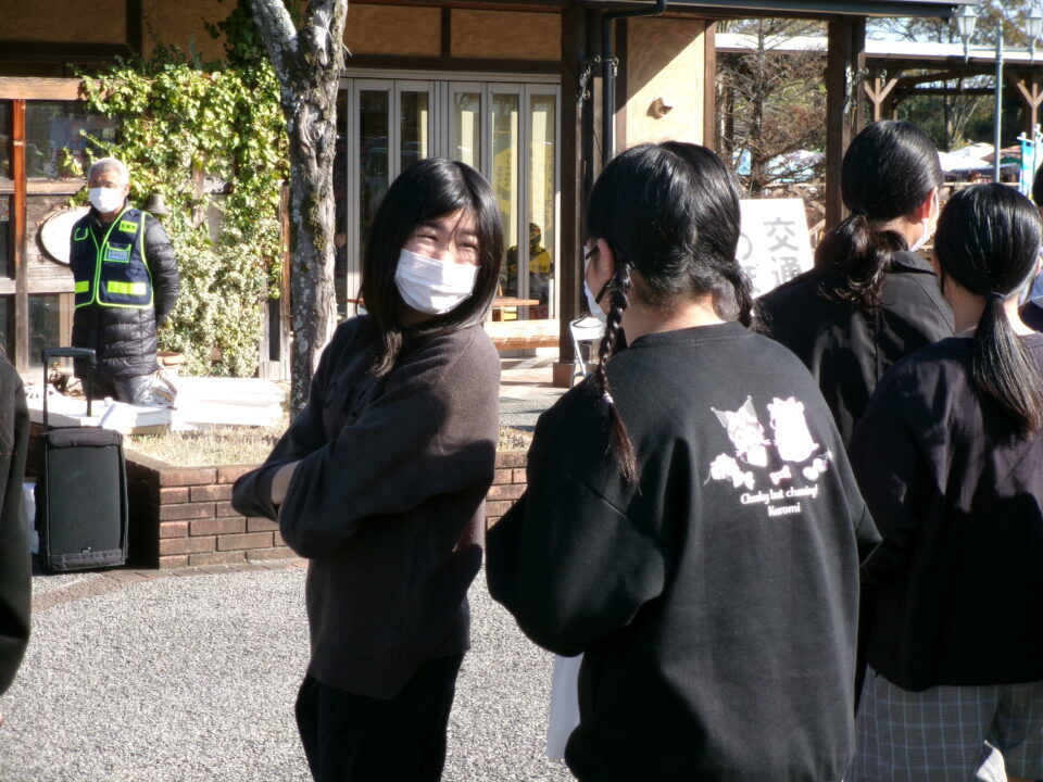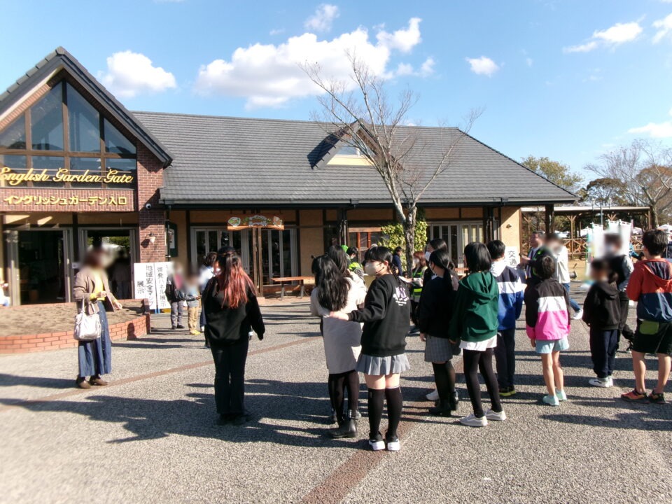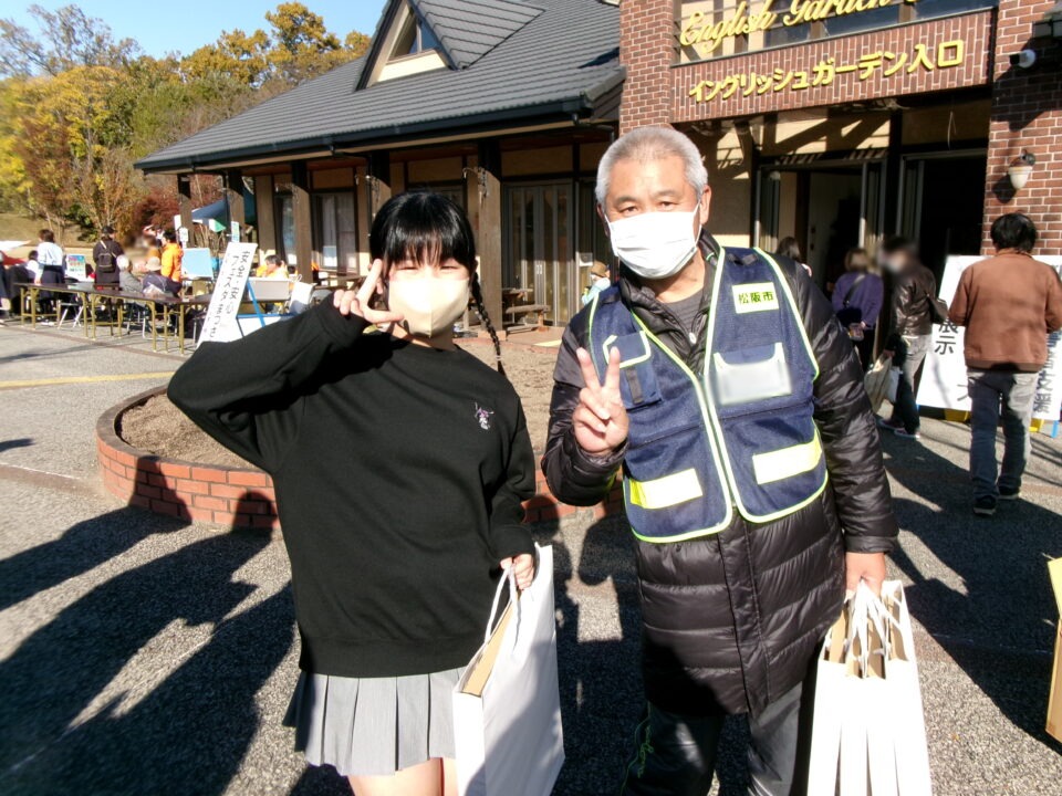 休みの日でしたが、学校代表として参加してくれてありがとう!記念にイングリッシュガーデン前でにっこり!