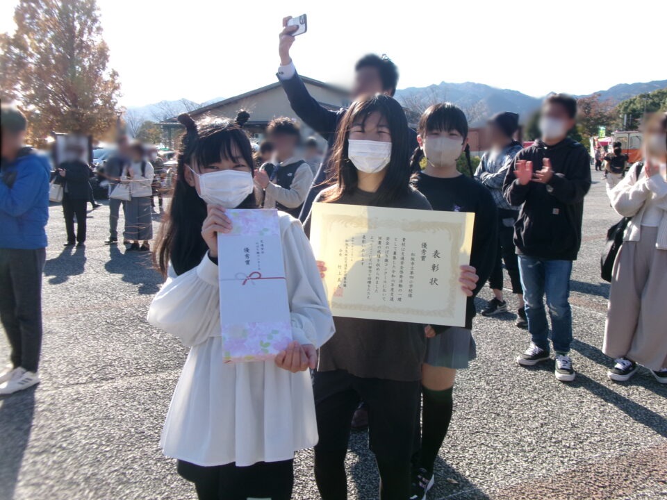 今日は、ベルファームで表彰式があり、のぼり旗制作に取り組んだ児童会役員が学校代表で出席しました。
