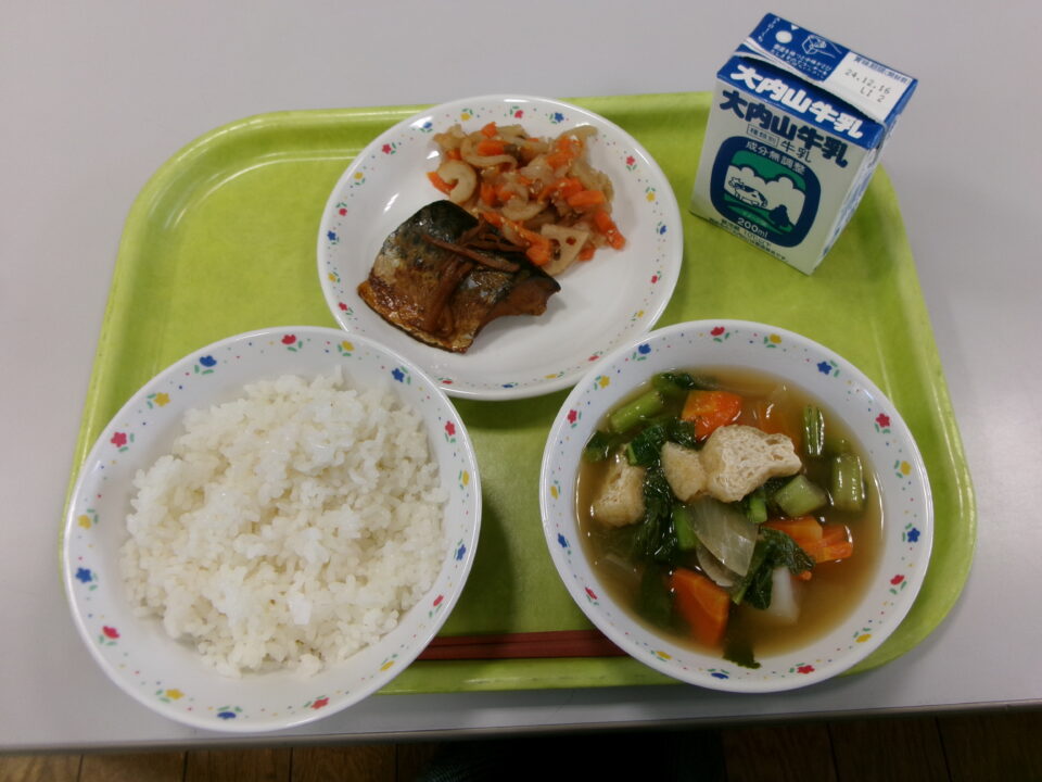 ご飯、牛乳、さばのみそ煮、あいまぜ、みぞれ汁でした。