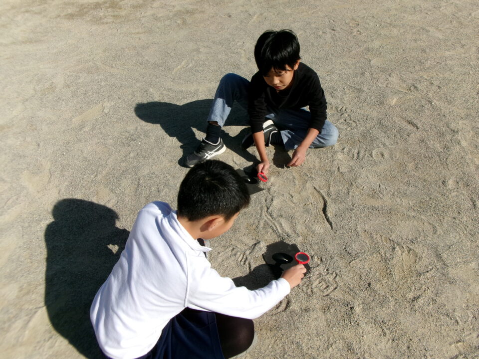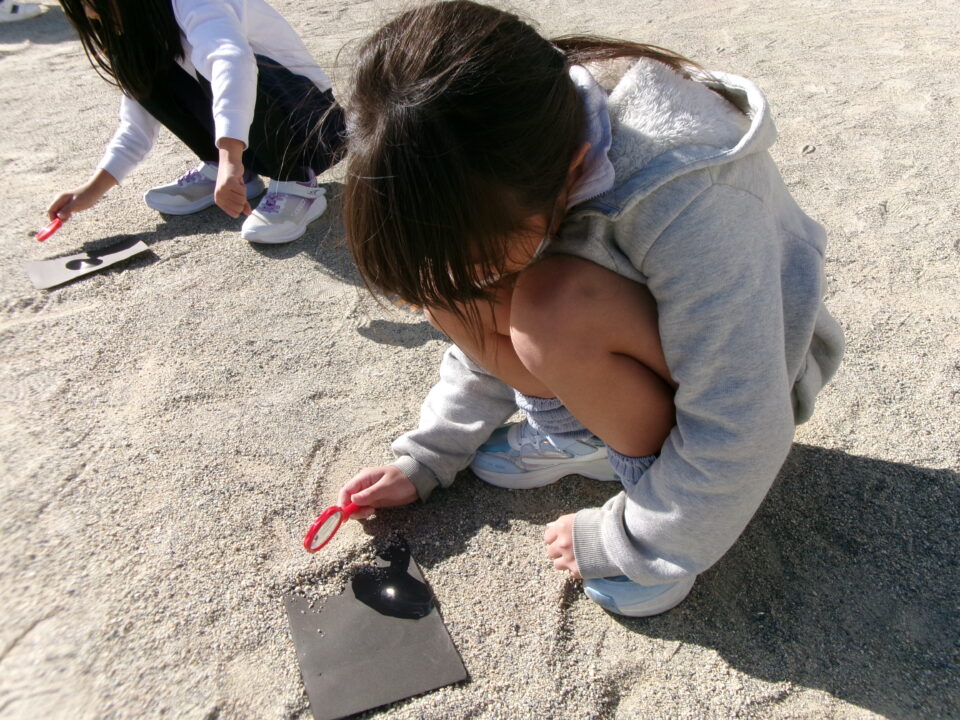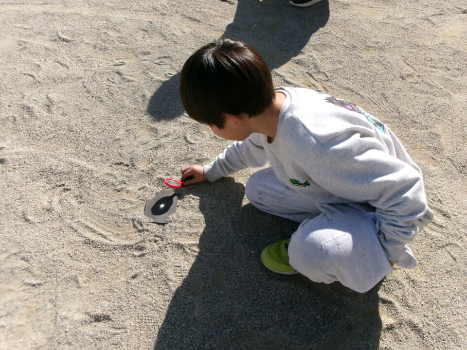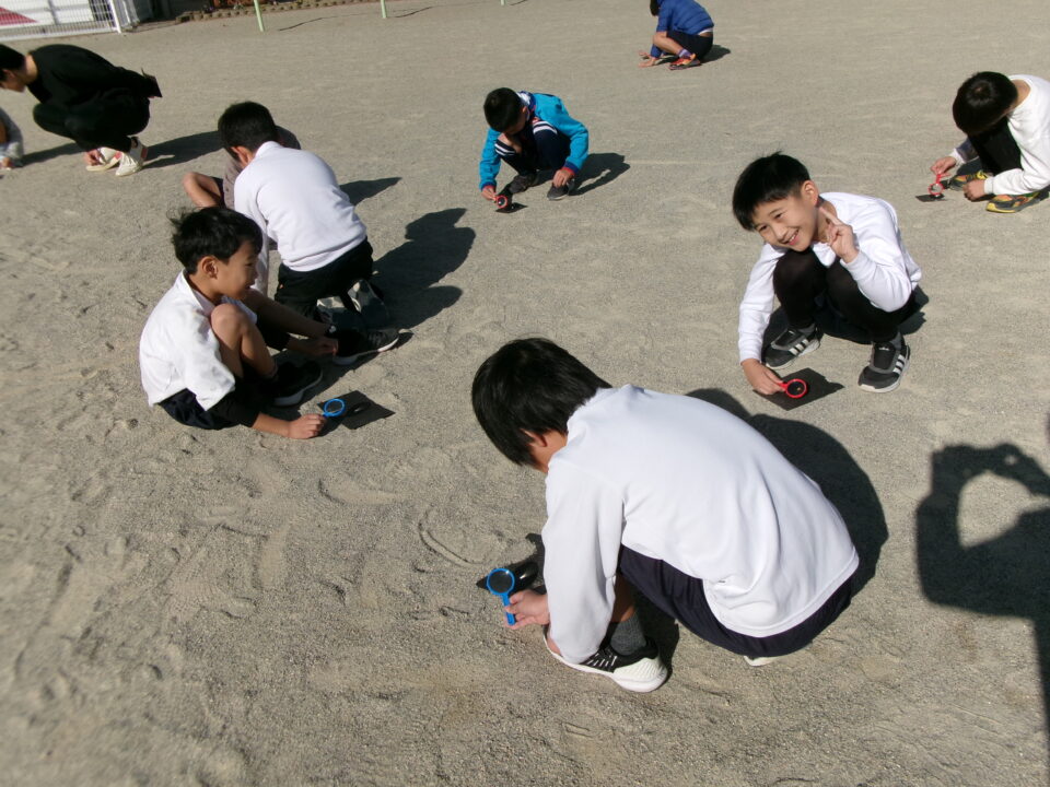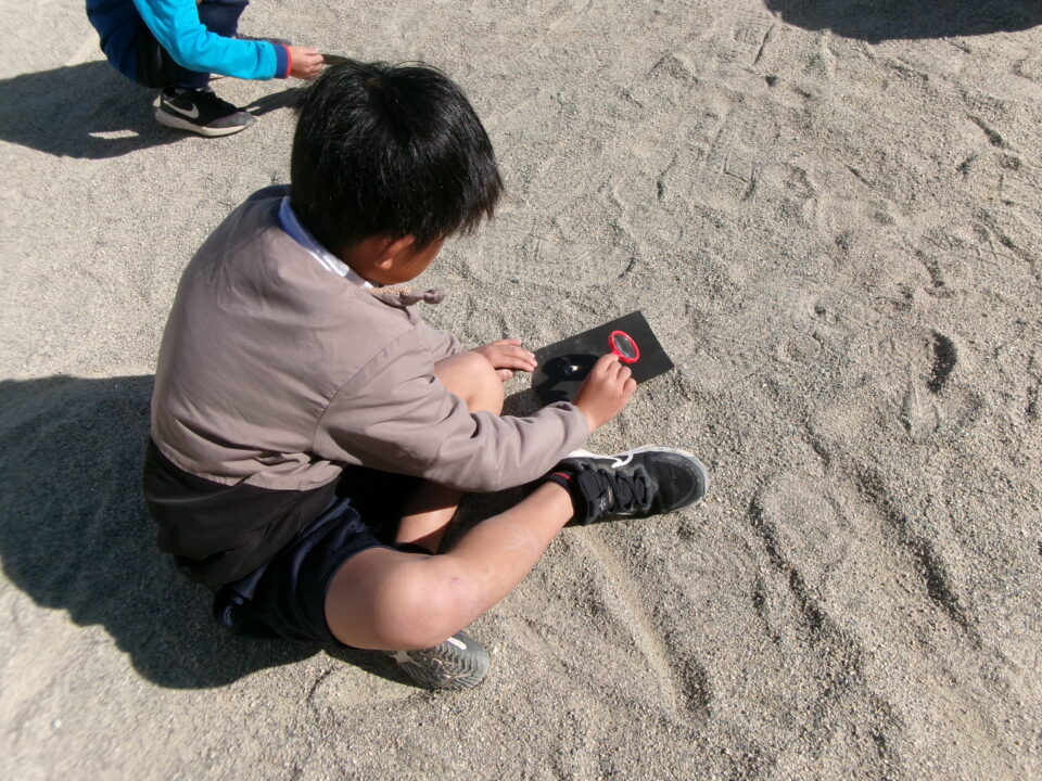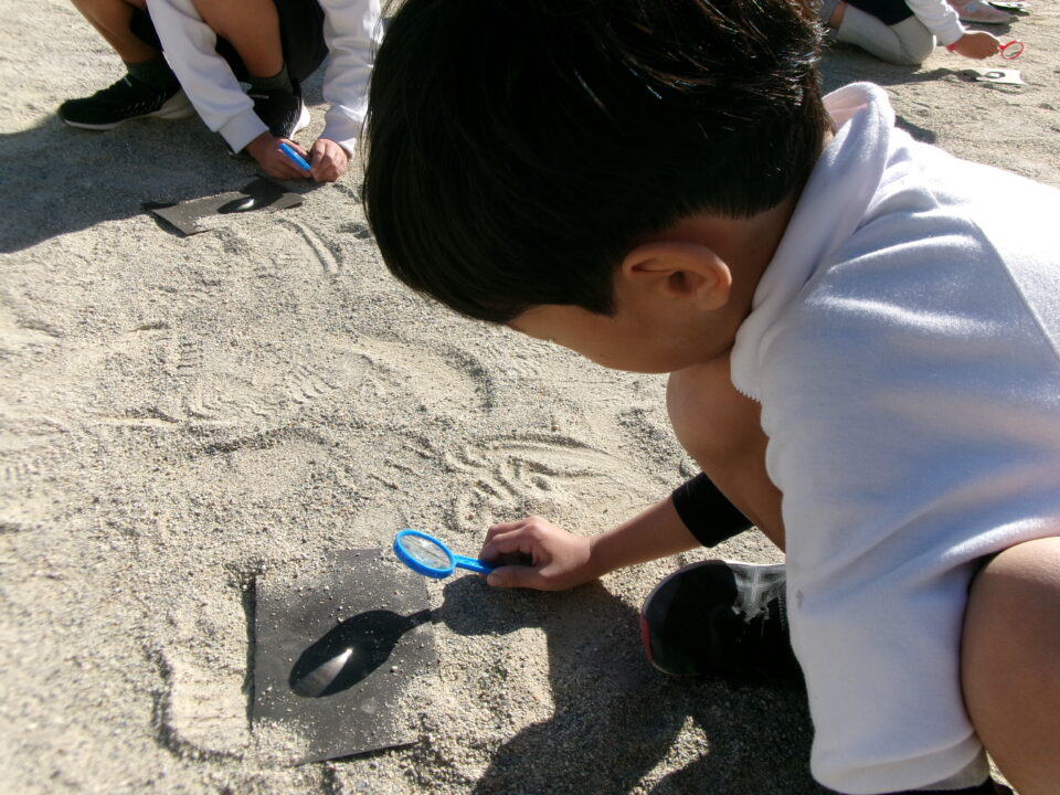 3限目は3年生が理科の学習で太陽の光を集めて、黒い紙に当てていました。すると、紙から煙が・・・・・