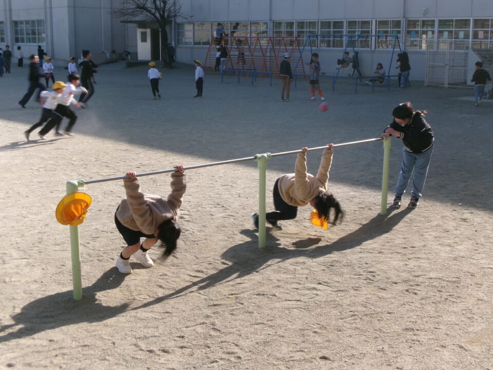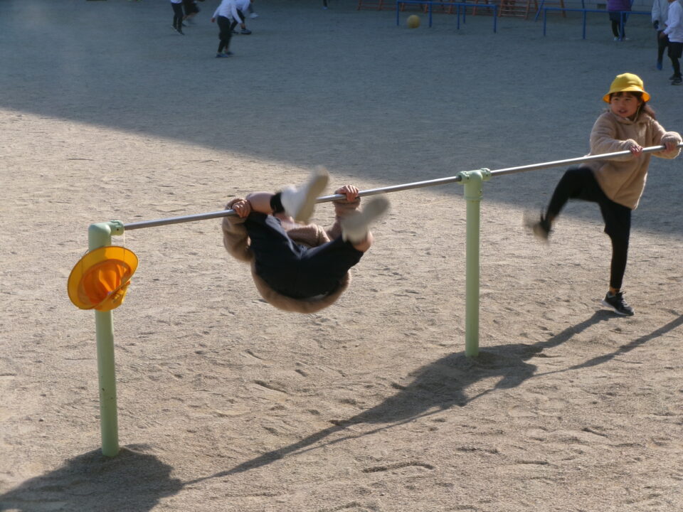 1年生の子は、鉄棒の練習をしていました。くるんくるんと上手でしたね。
